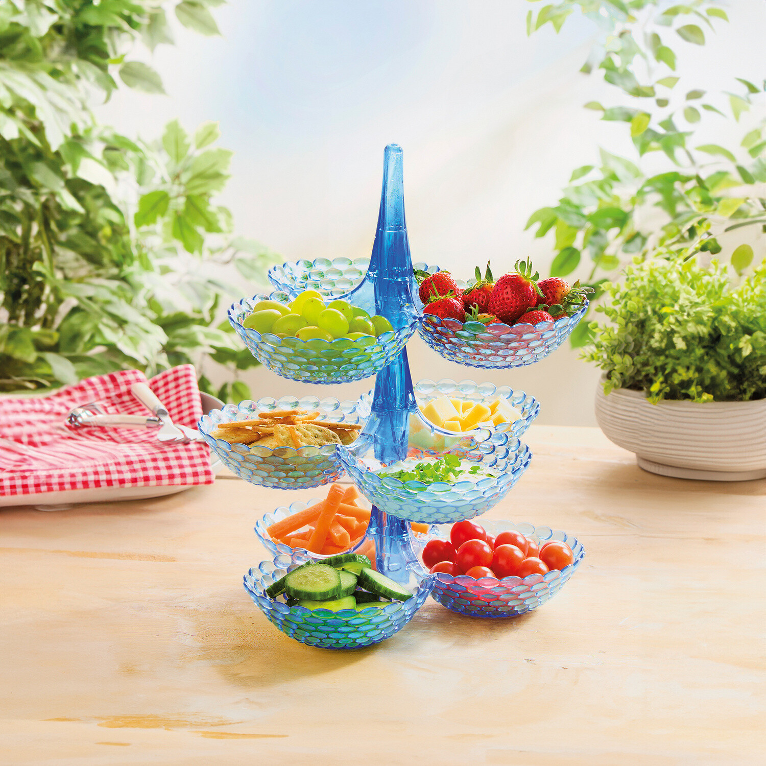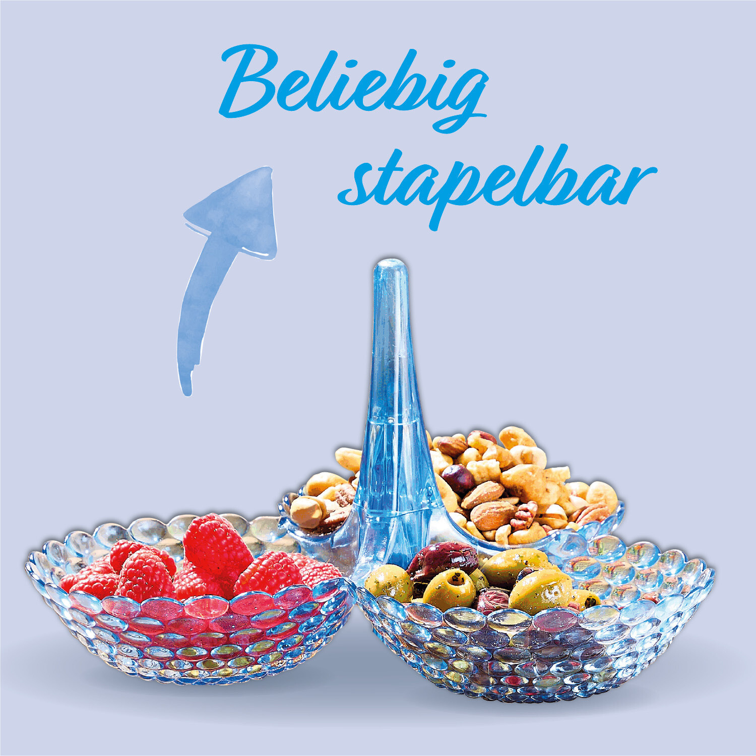 Elegant ca cristalul și poate fi chiar stivuit pentru a crea un suport elegant de prezentare. 3 boluri într-unul îți permit să servești totul separat, dar unul lângă altul: fructe, dulciuri, delicii sărate etc. Ca și cum ar fi făcute din cristal șlefuit. Multifuncțional. Mai multe piese pot fi stivuite una peste alta. Basilico.