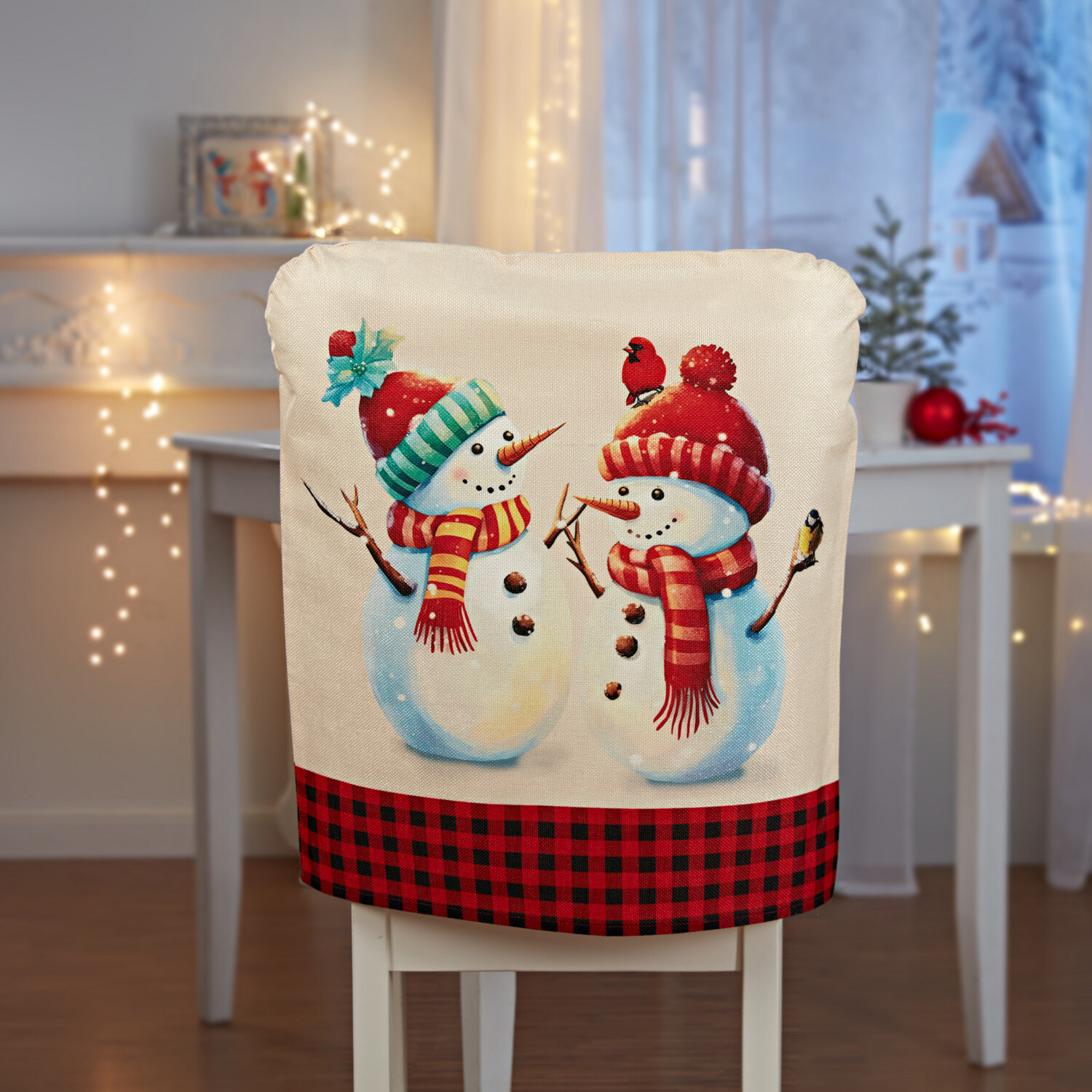 Îmbracă-ți scaunul pentru sezonul festiv! Cu aceste huse vesele în formă de om de zăpadă, toată lumea va fi fericită să se încălzească și să creeze o atmosferă festivă. Ușor de pus. Îți încălzește spatele. Potrivit pentru scaune standard.