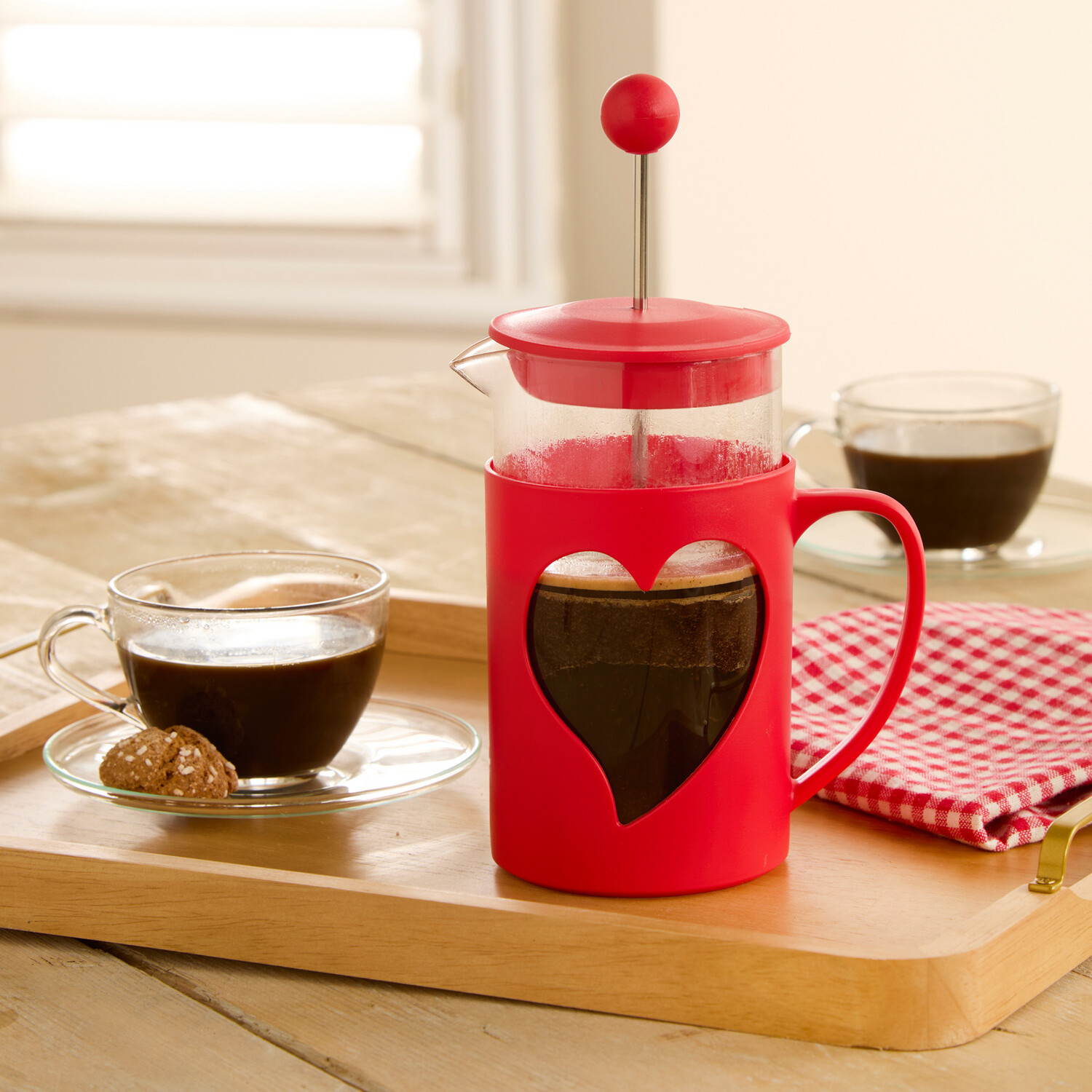Cafeaua proaspăt preparată în această cafetieră cu filtru vă va ridica moralul și vă va pune într-o dispoziție pozitivă pentru întreaga zi. Drăguță, în culoare roșu aprins, cu motiv în formă de inimă. Sita filtrului este fabricată din oțel inoxidabil fără gust. Mâner izolat din plastic.