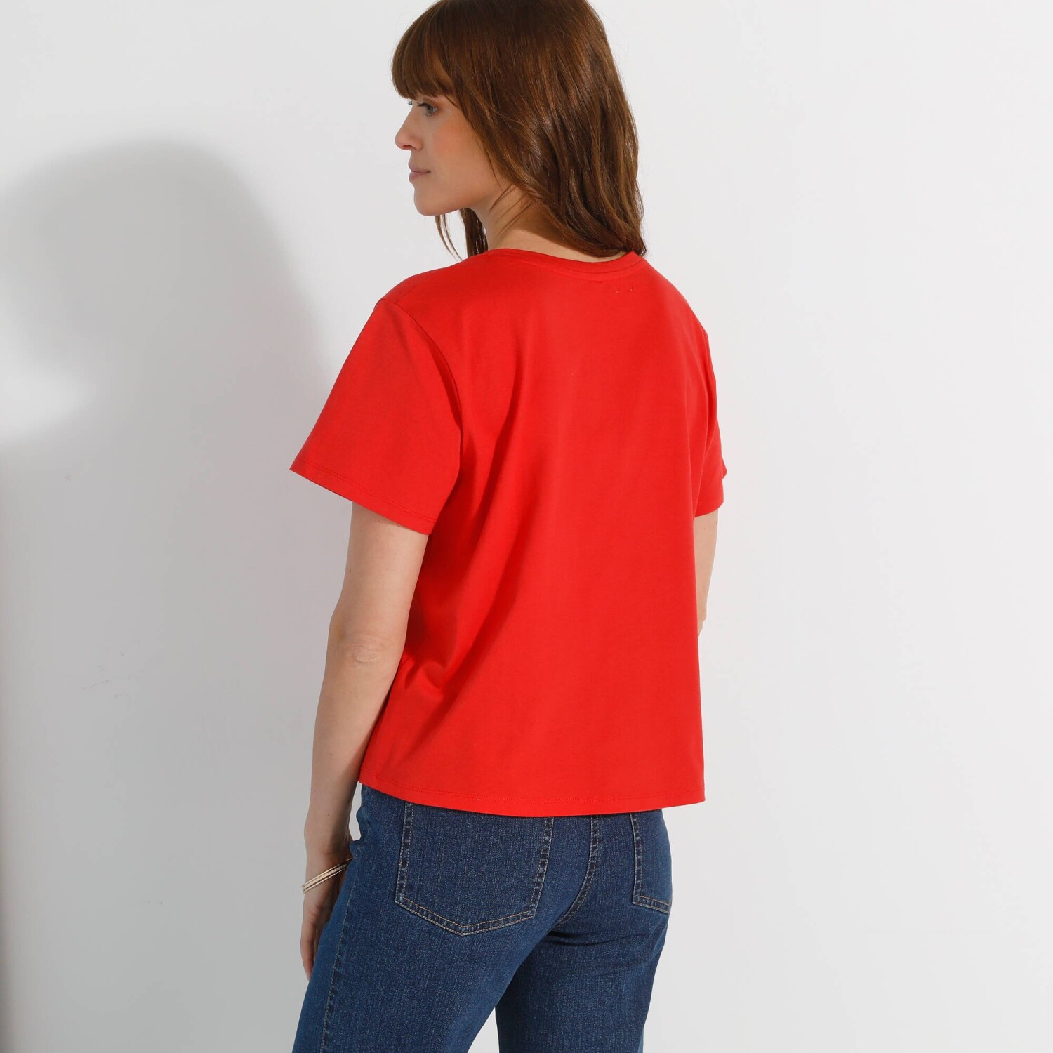 Baza garderobei este un tricou cu un decolteu tunică și mâneci lungi. Jersey aerisit. Decolteu rotund cu fermoar cu nasturi. Mâneci lungi. tiv drept. Standard Oeko-Tex 100 (n° CQ 1216 / 3 IFTH). Această marcă identifică produsele textile care au fost supuse unor teste de laborator pentru o gamă largă de substanțe nocive și produsul este sigur dincolo de standardele actuale. Se poate spăla la mașină.