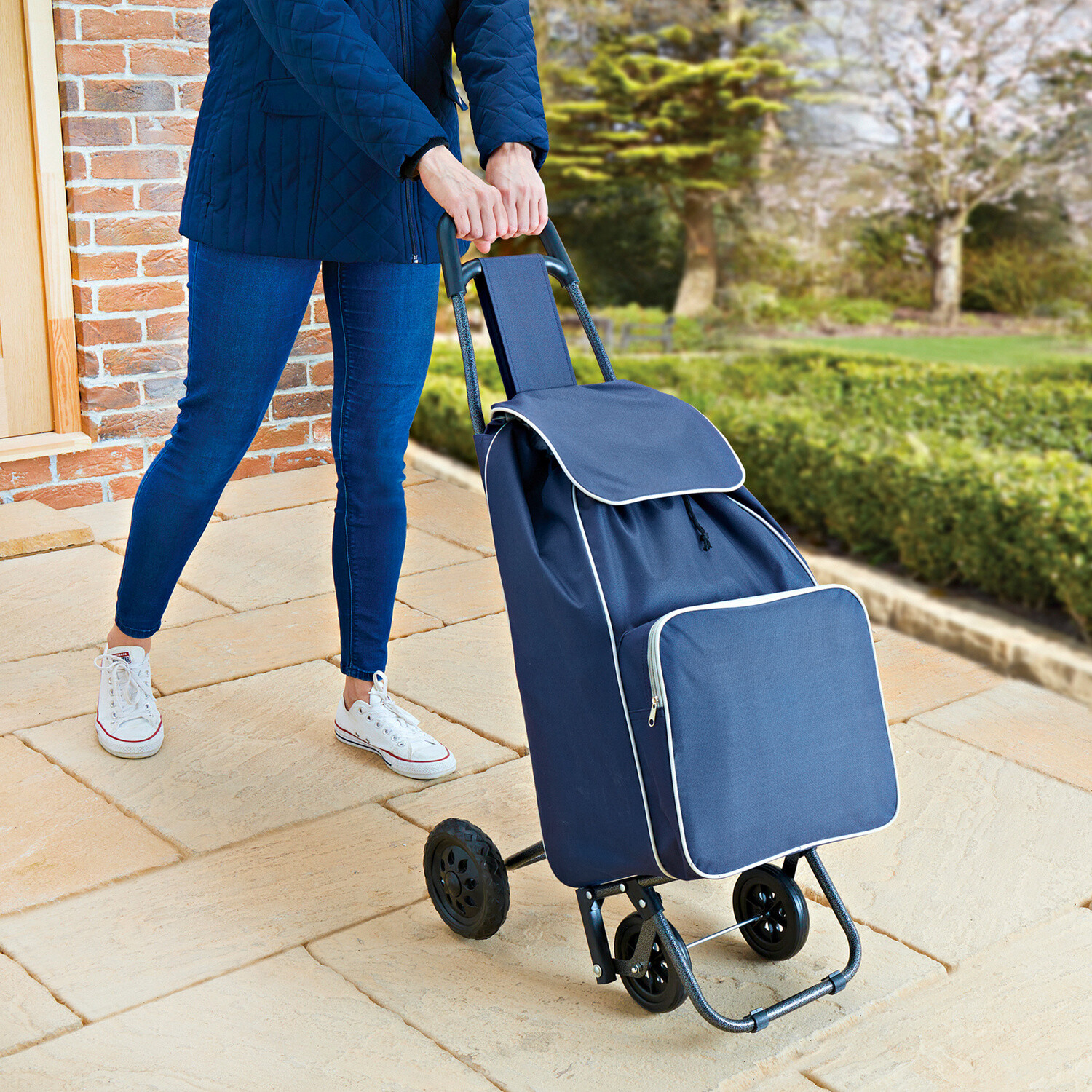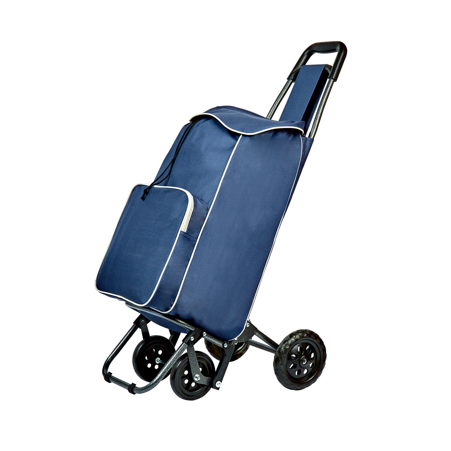 Extrem de ușor și manevrabil! Puteți trage cu ușurință acest cărucior de cumpărături flexibil pe 4 roți în spatele dvs. sau îl puteți împinge fără efort pe la colțuri și prin spații înguste. Datorită cadrului său robust, poate transporta încărcături de până la 25 kg. Geanta XL robustă cu cordon poate transporta 50 de litri de cumpărături, în timp ce geanta frontală termică cu fermoar păstrează alimentele congelate reci pentru o perioadă lungă de timp.