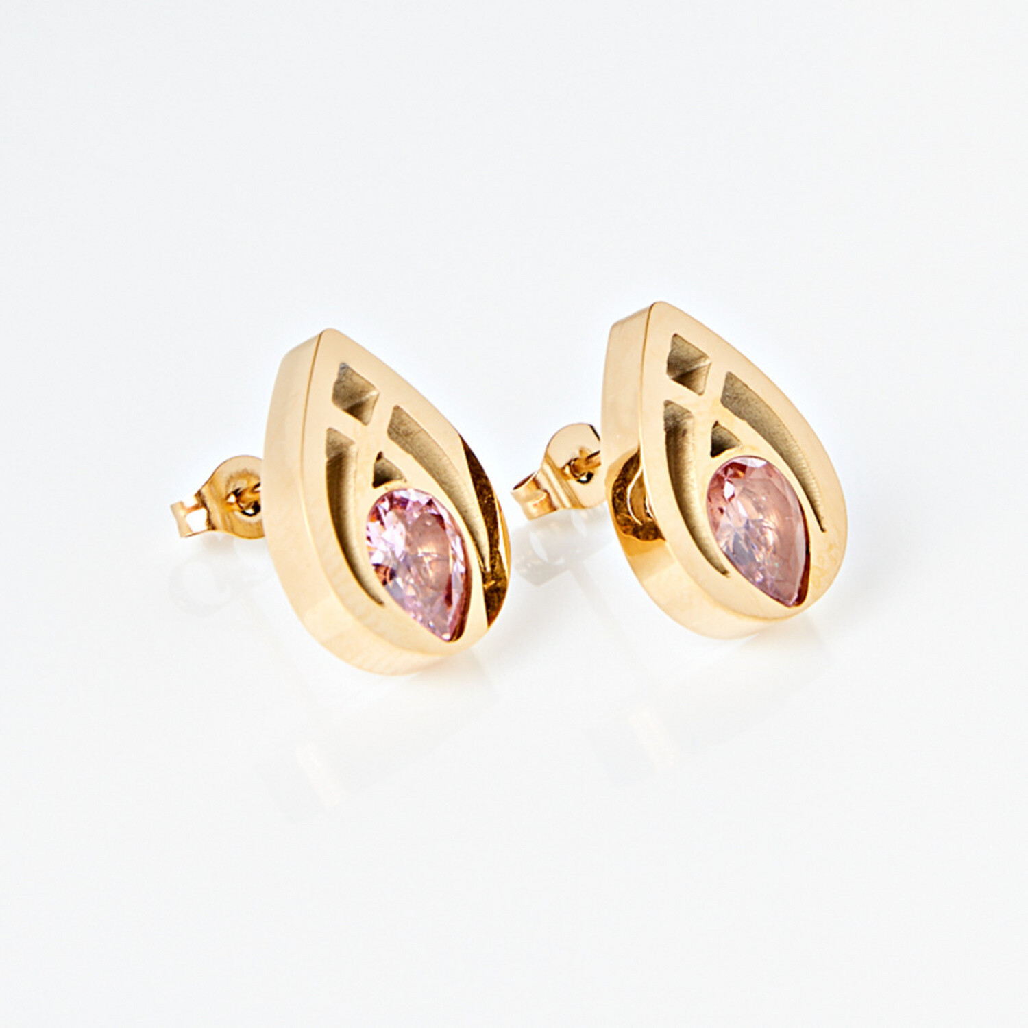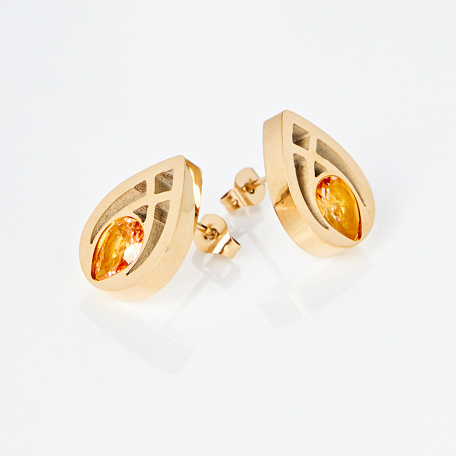 Acest set elegant de bijuterii strălucește cu un pandantiv în formă de picătură bogat decorat. Piatra de culoare cuarț fumuriu subliniază aspectul elegant. Cercei 18 x 12 mm.