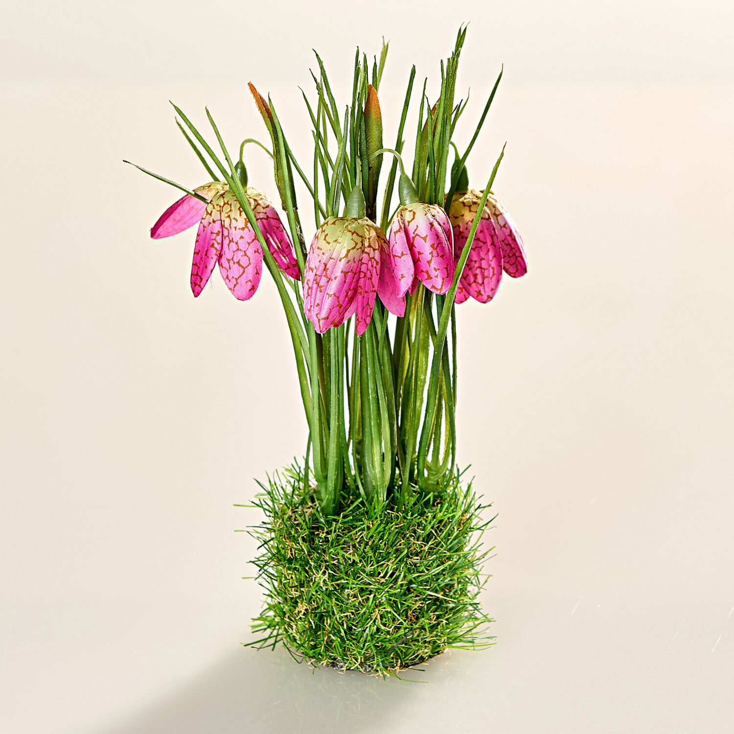 Lalele galben strălucitoare, margarete și o omidă: aranjamentul clasic de Paște. În ghiveci de teracotă. Indisociabil de cel real.