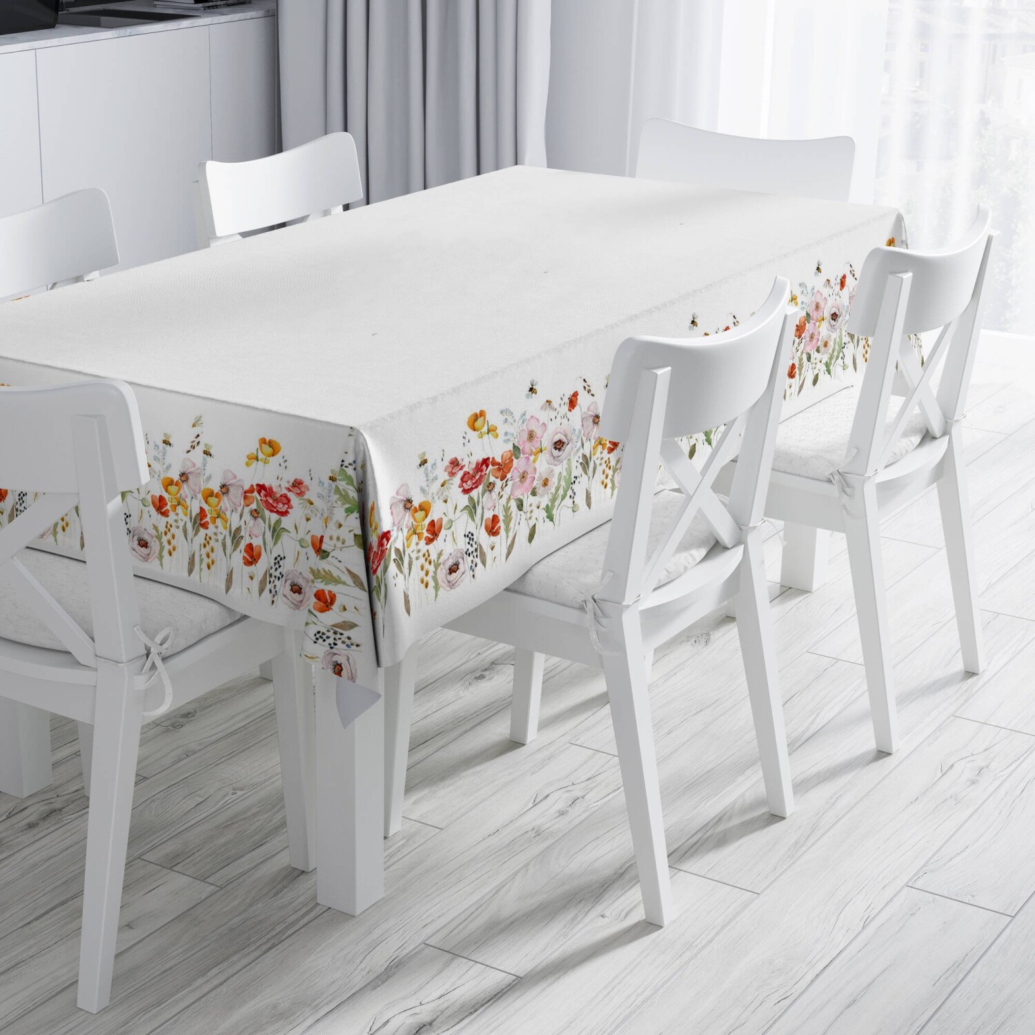 Față de masă cu imprimeu vegetal și tratament antipătare