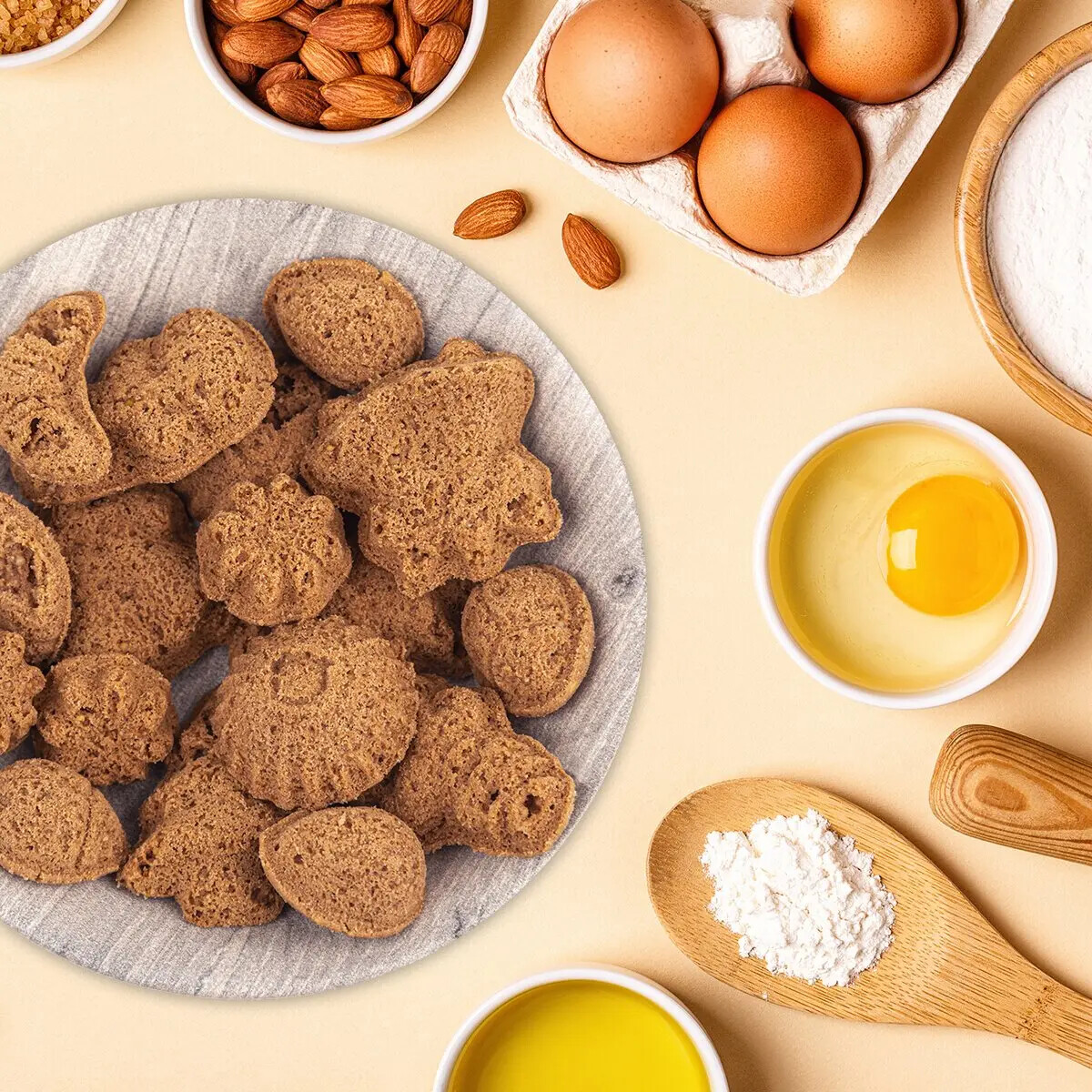 Cu 6 forme diferite de decoratiuni pentru Craciun. Usor de pliat. Fabricate din silicon, cu compatibilitate termica mare: de la -40 C la 230 C. Mirosul si gustul materiilor prime nu se mentine dupa utilizare. Decoratiuni individuale : aprox. 7 x 6 cm.