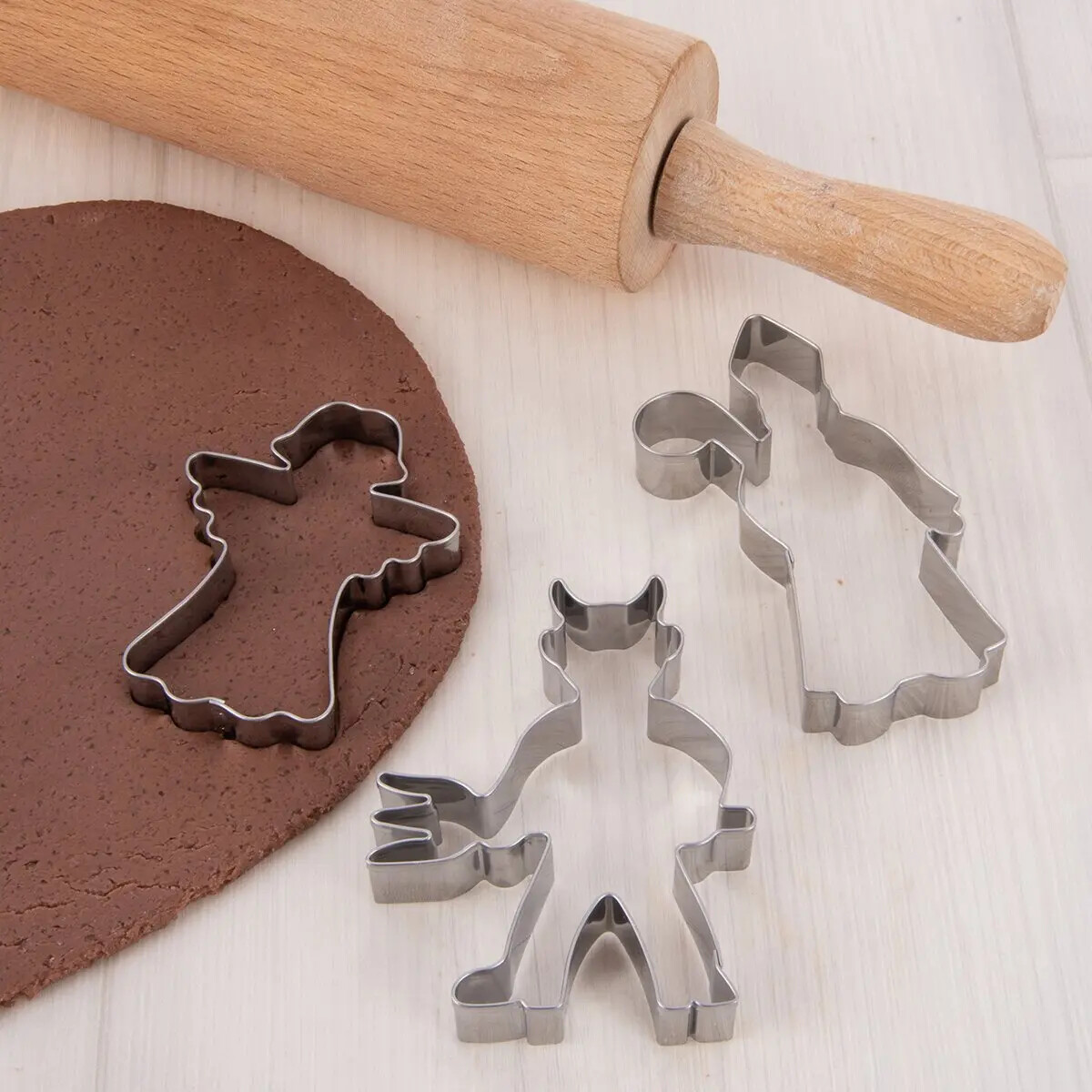 Motiv tradițional cu animale de Paște pentru prăjituri originale de casă. Setul include 3 bucăți – iepure, găină, pui. Potrivit pentru mașina de spălat vase. Material: oțel inoxidabil. Dimensiuni: aprox. 6 x 5 cm, înălțime 1,6 cm.