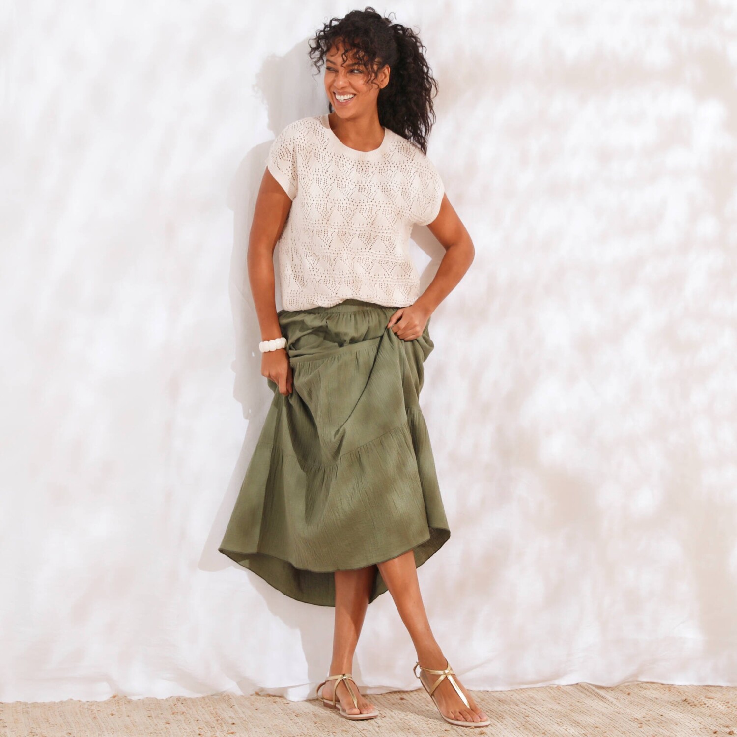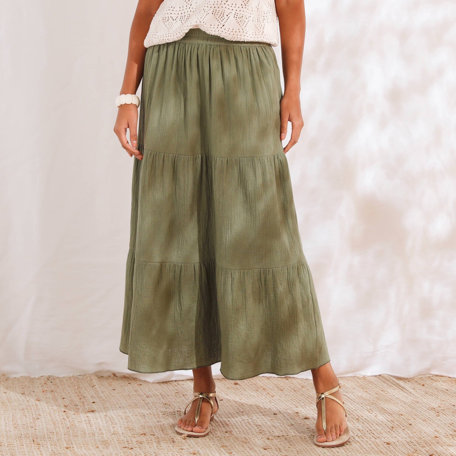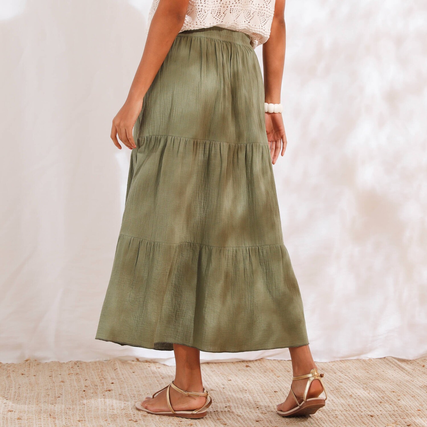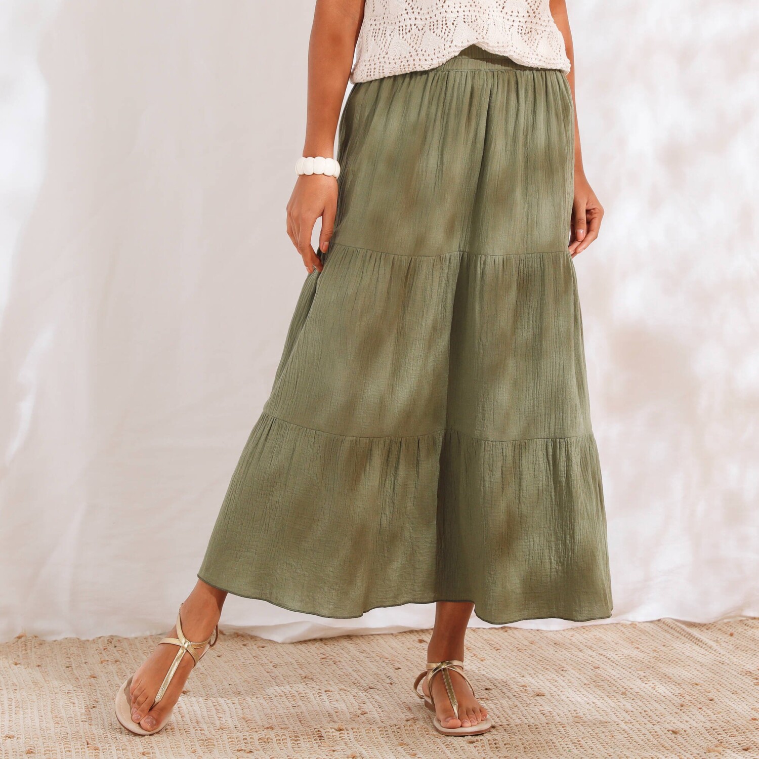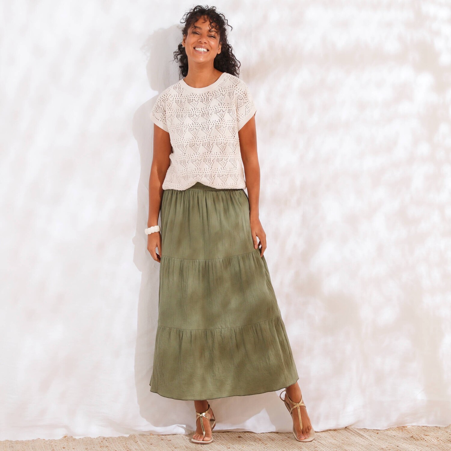 Fiți de neocolit cu o fustă lungă cu un imprimeu original. Confecționată din voal ușor și aerisit. Croială lungă măgulitoare. Talie elastică confortabilă. Căptușeală completă. Se poate spăla la mașină.