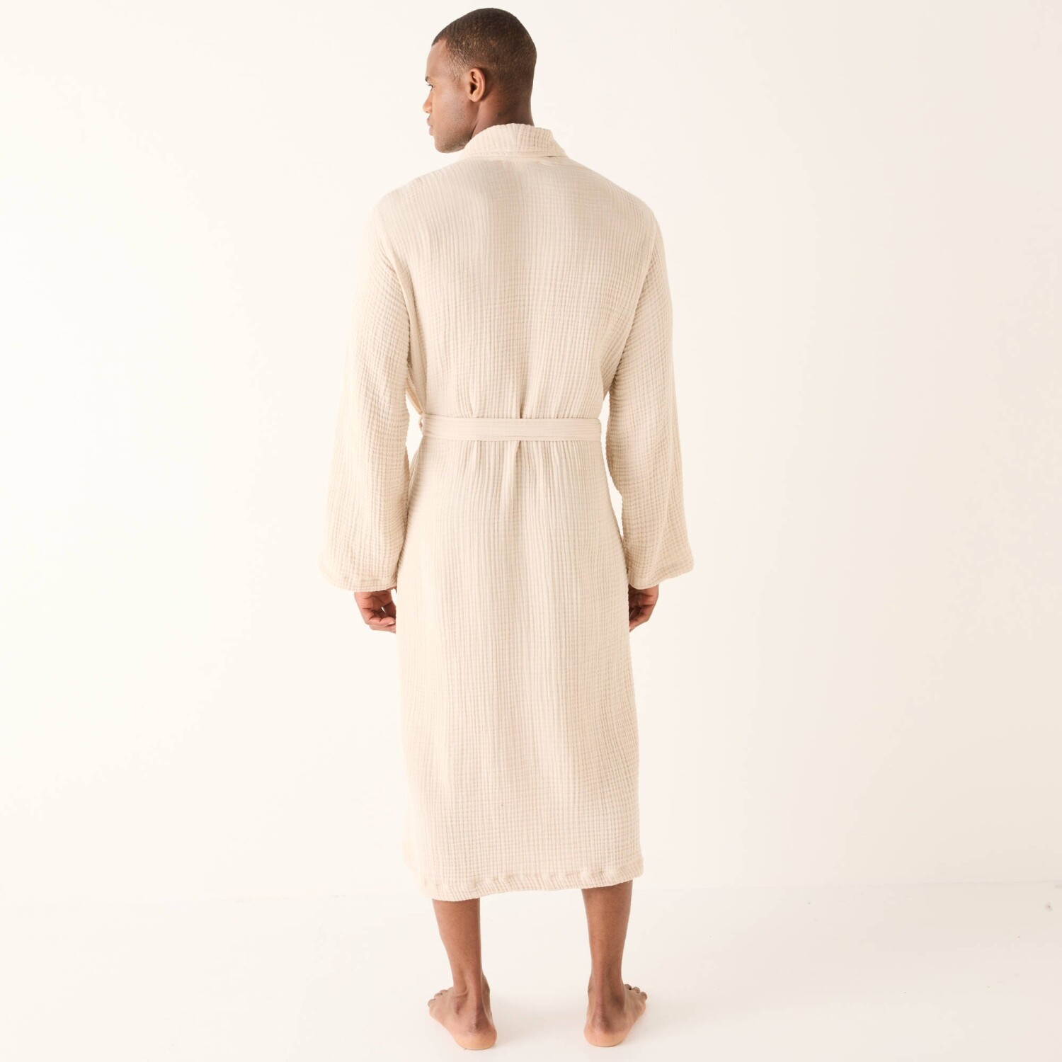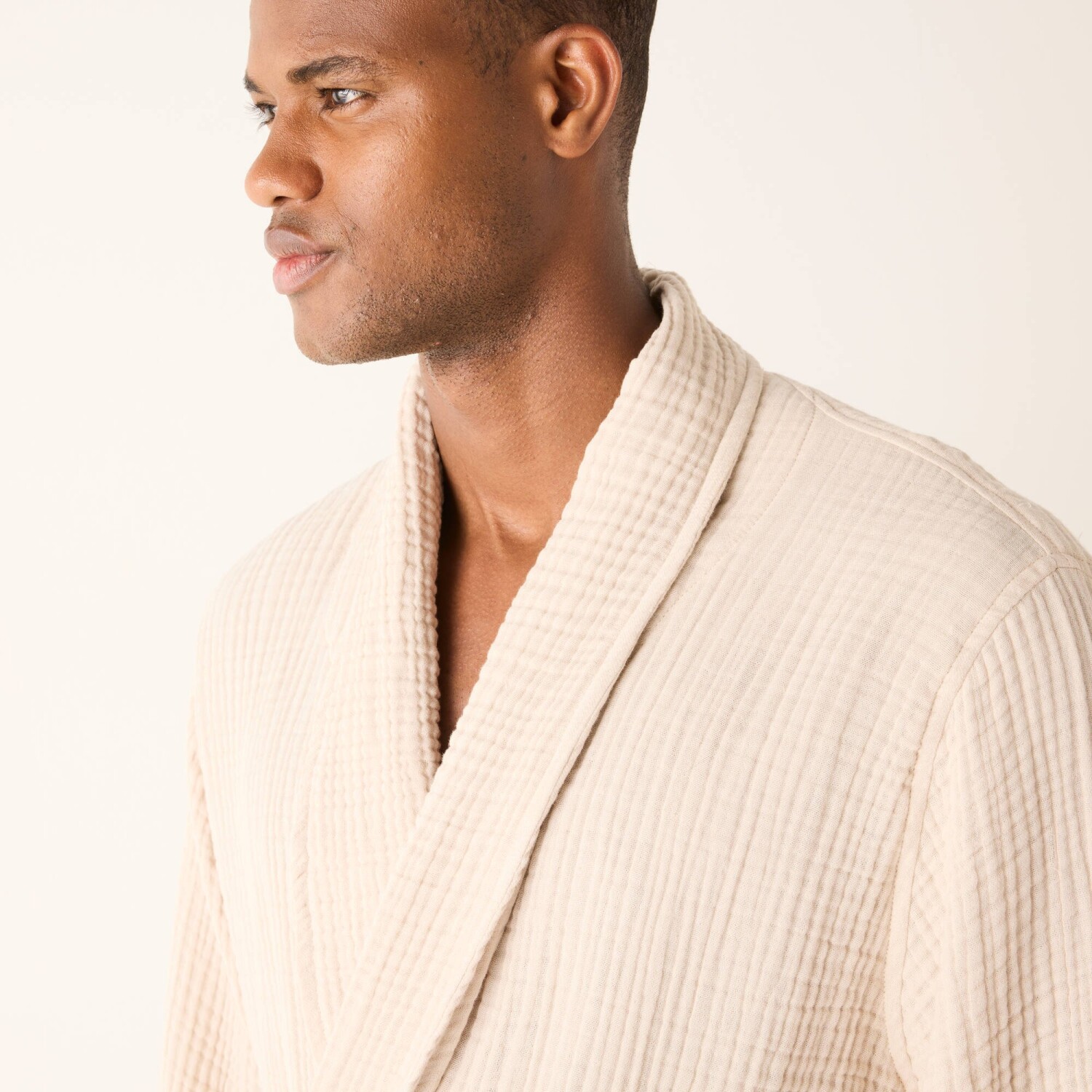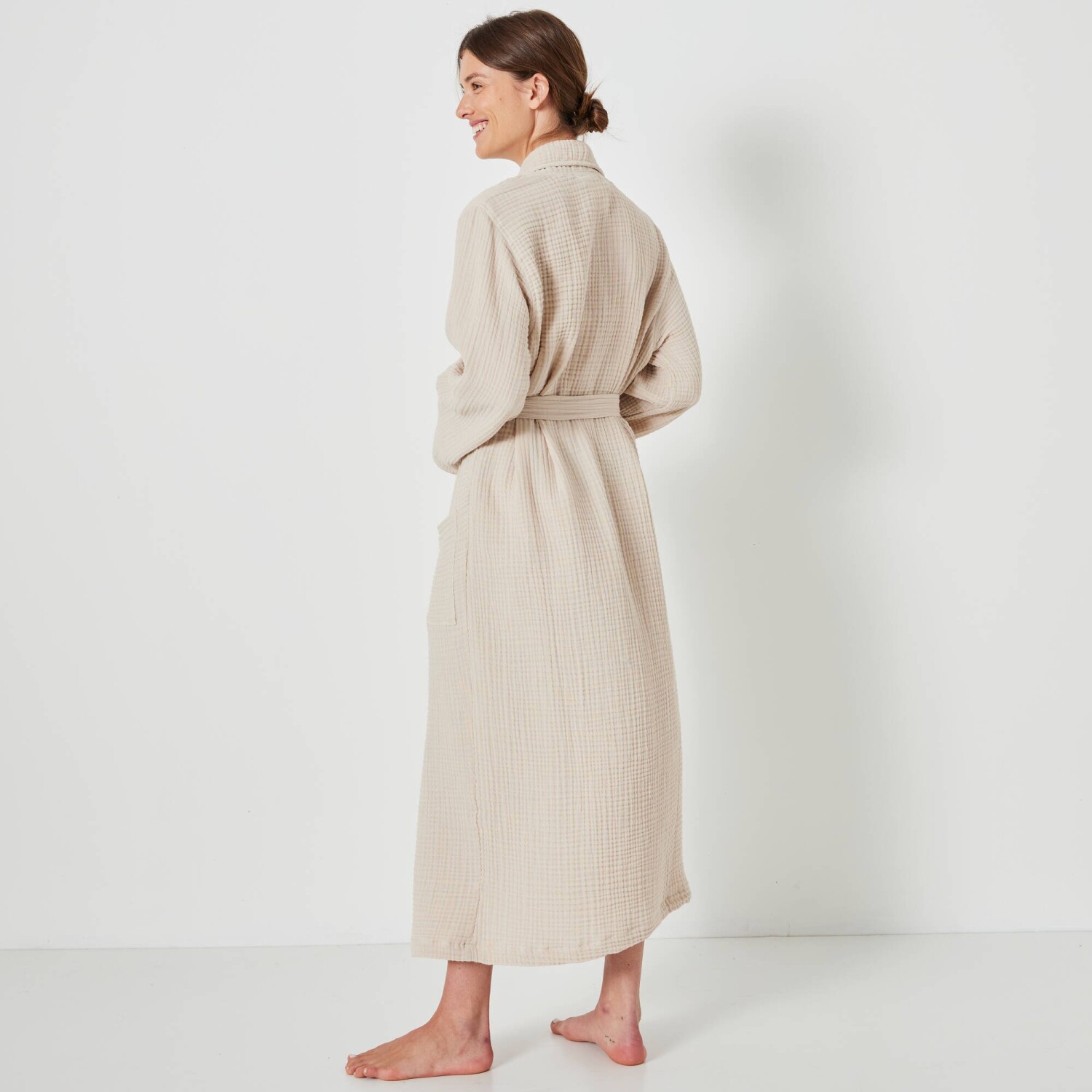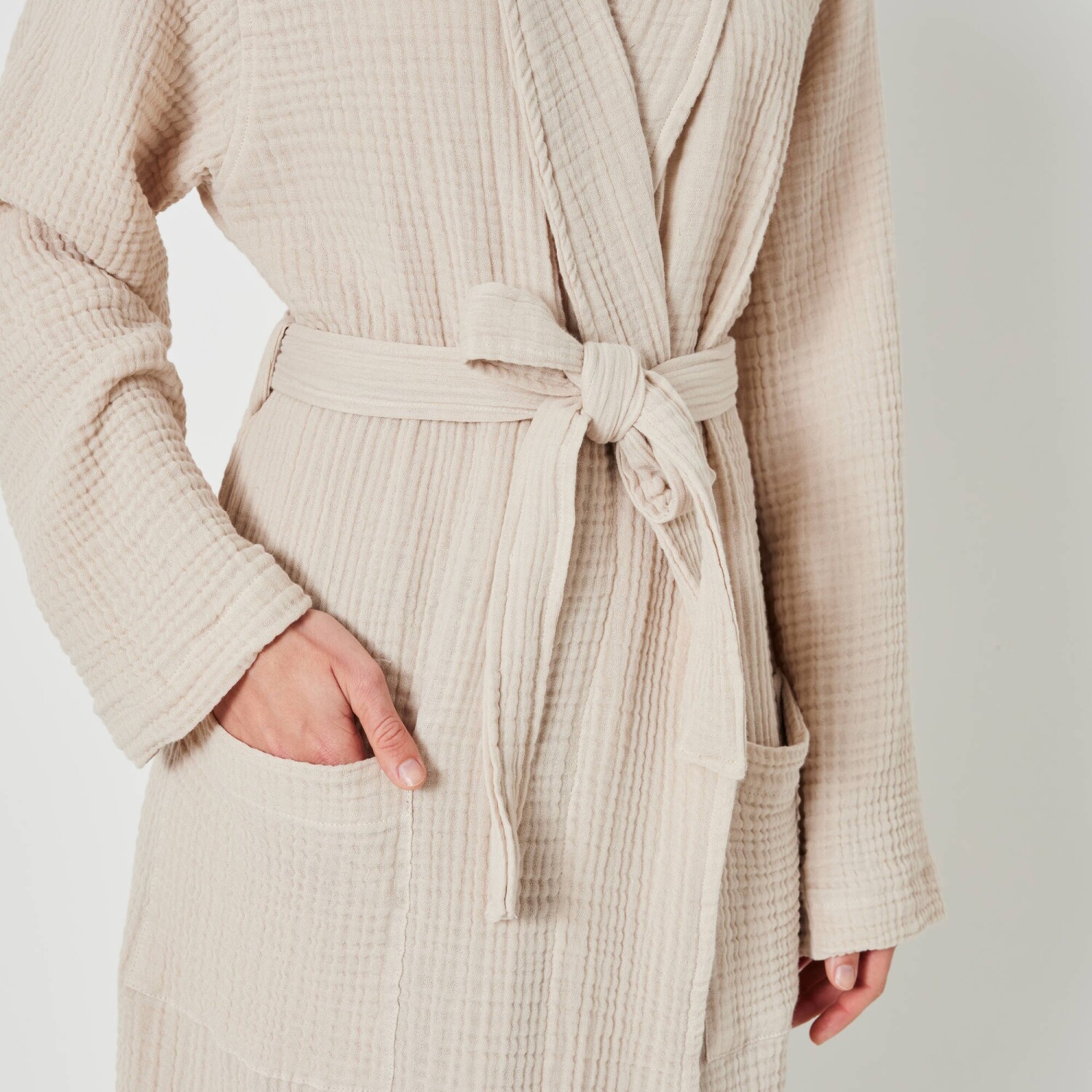 Bucură-te de confort și relaxare cu acest halat de baie minunat de moale, din țesătură terry 100% bumbac, confecționat din bumbac de 380 g/m² cu absorbție ridicată. Calitate Colombine. Fabricat din material selectat pentru moliciunea și durabilitatea sa. Culori rezistente la spălare. Guler șal. Mâneci lungi. 2 buzunare aplicate. Gaici pentru curea și șnur de strângere. Oeko-Tex Standard 100 (nr. CQ 1216/1 IFTH). Această marcă indică produse textile care au fost testate în laborator pentru o gamă largă de substanțe nocive și sunt sigure dincolo de standardele aplicabile. Lavabil la 60°C; din motive de mediu, recomandăm spălarea la 40°C și uscarea la aer.