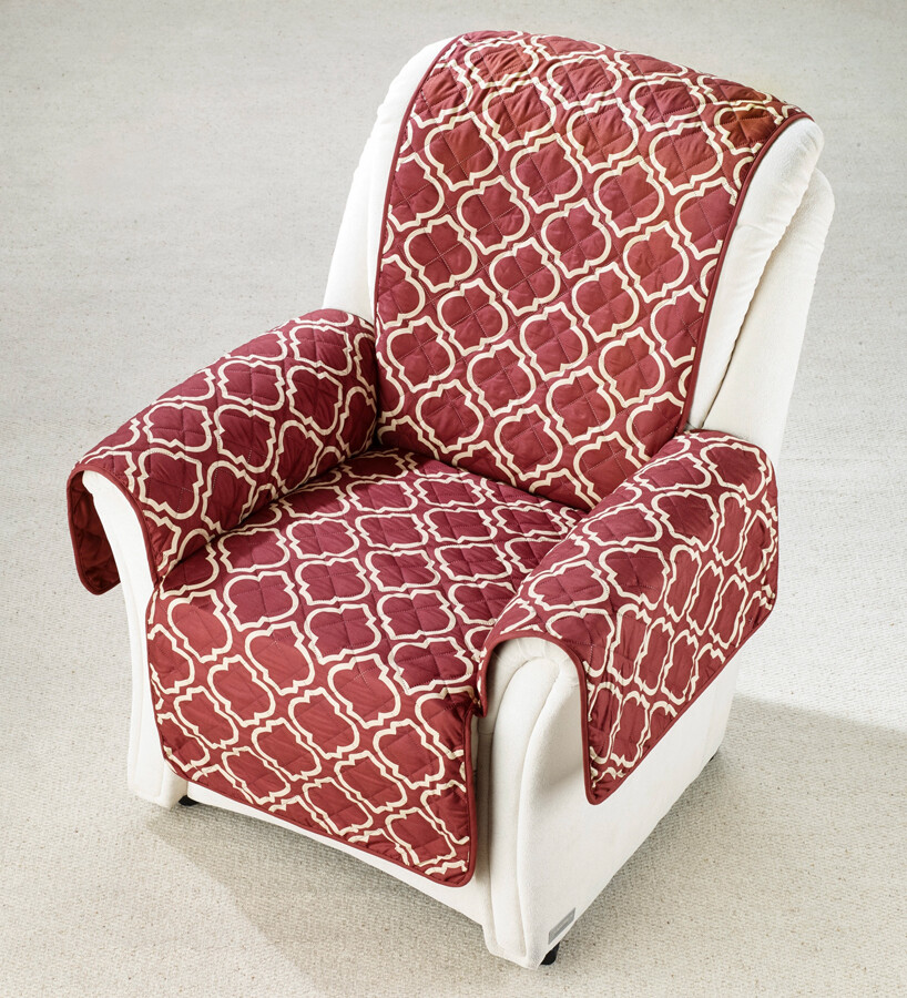 Husa frumoasă, în două culori, protejează tapițeria și oferă fotoliului dumneavoastră un aspect retro. O puteți întoarce după preferință. Husa se adaptează mobilierului și îl protejează de murdărie. Confort special la ședere datorită căptușelii. Se poate spăla la 30 °C. Material: poliester. Dimensiuni: 179 × 165 cm, cotiere 55 cm.
