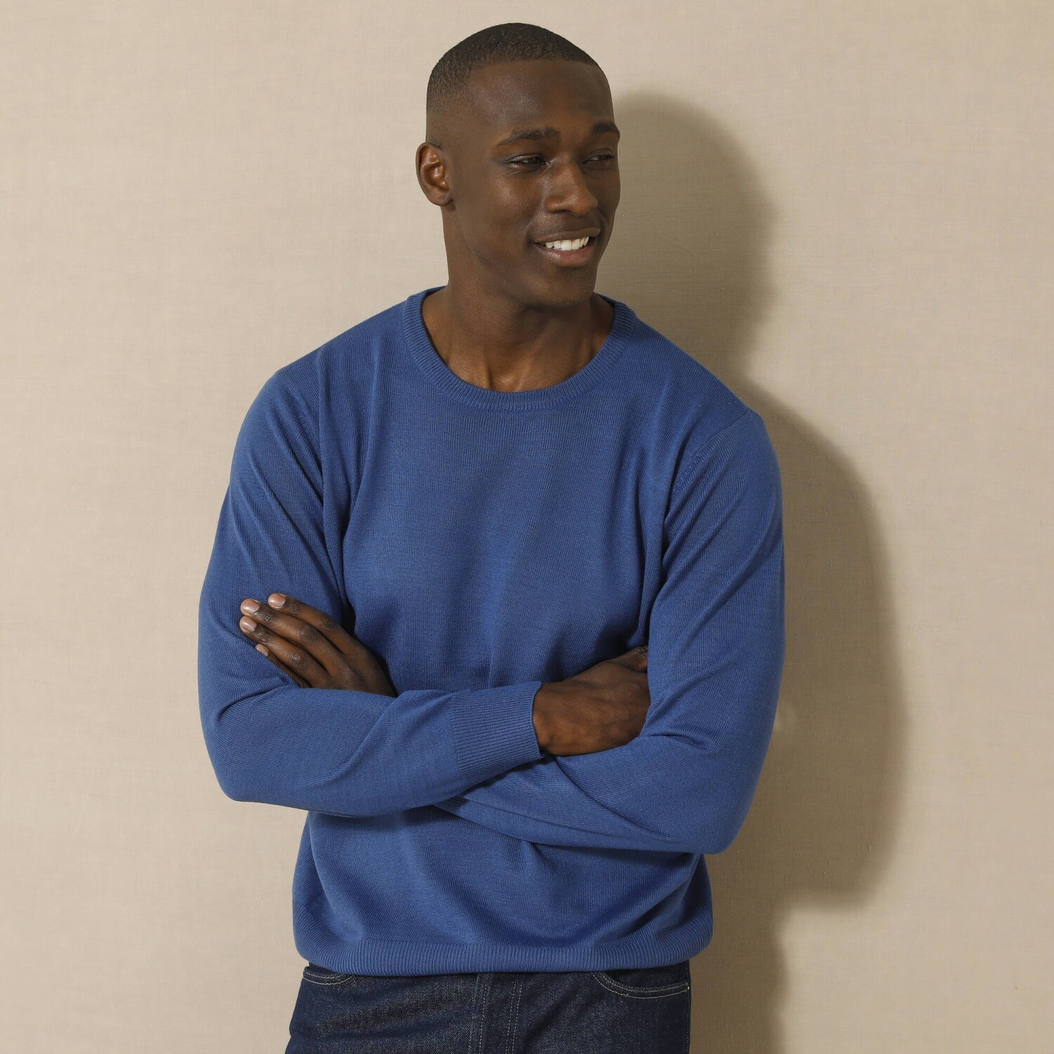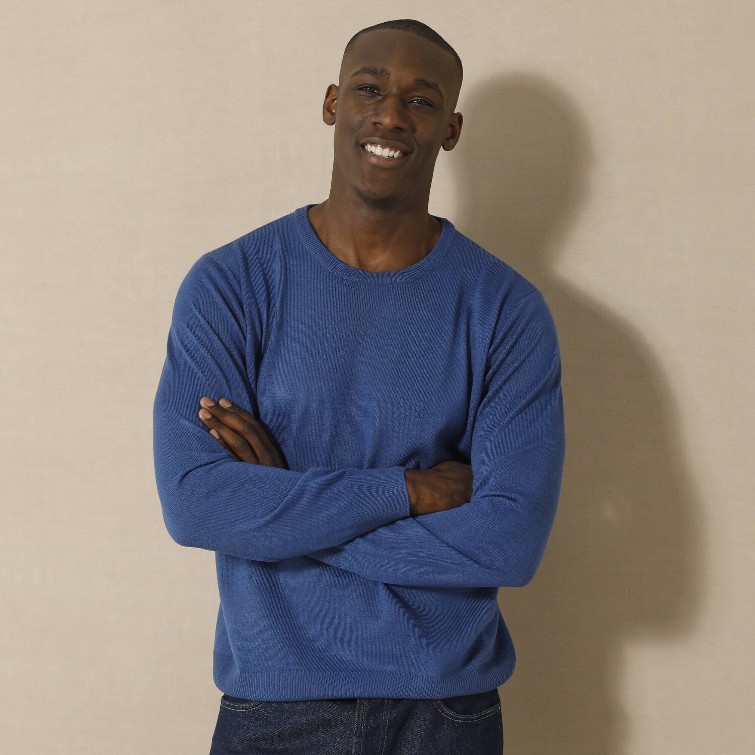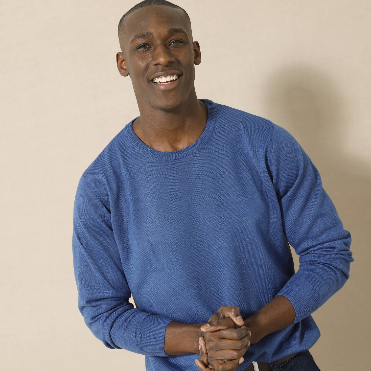Croială clasică, culori moderne… acest pulover cu guler rotund este confecționat dintr-un material ușor de întreținut. Are decolteu rotund, mâneci lungi și manșete elastice. Se poate spăla la mașină la 30°C pe ciclul de lână.