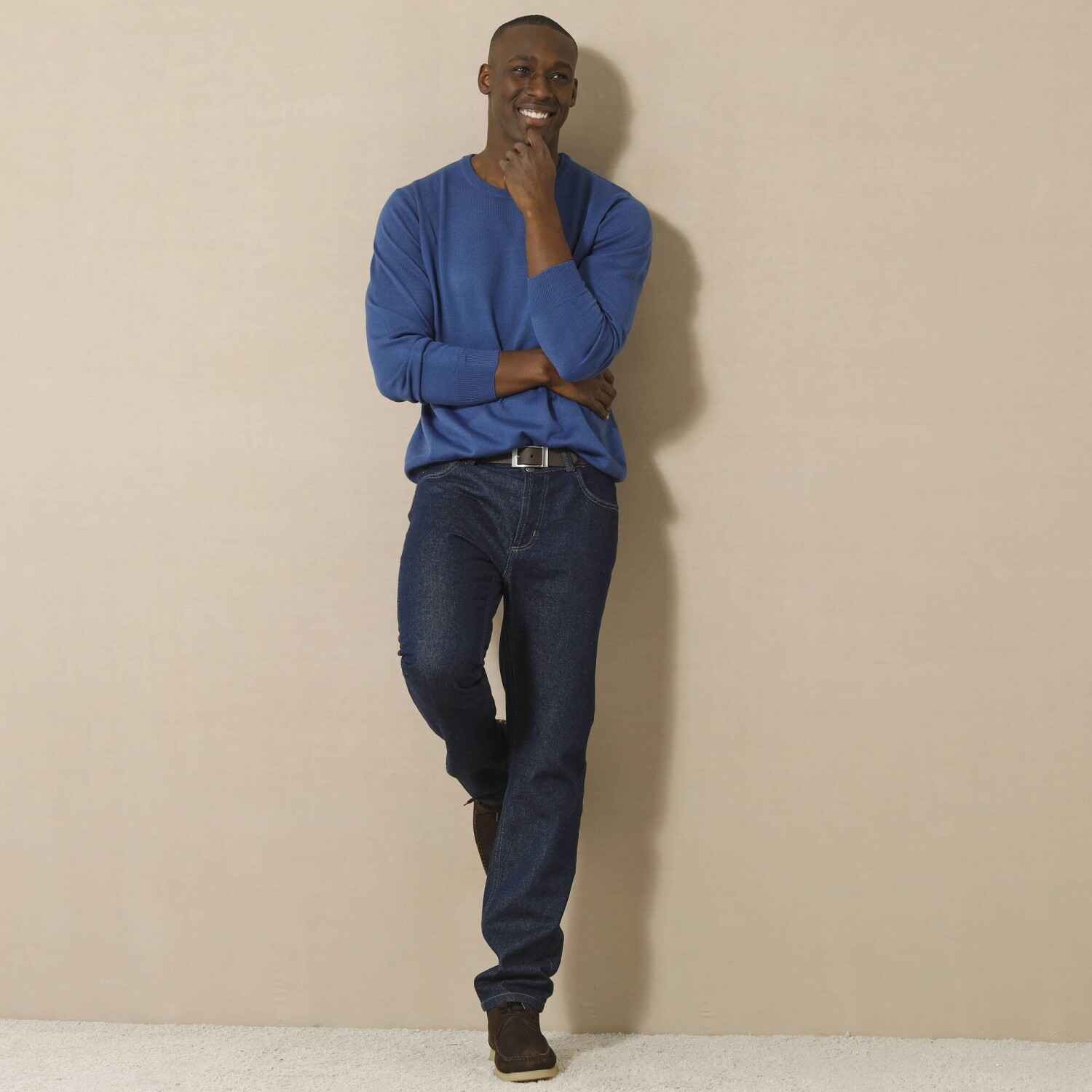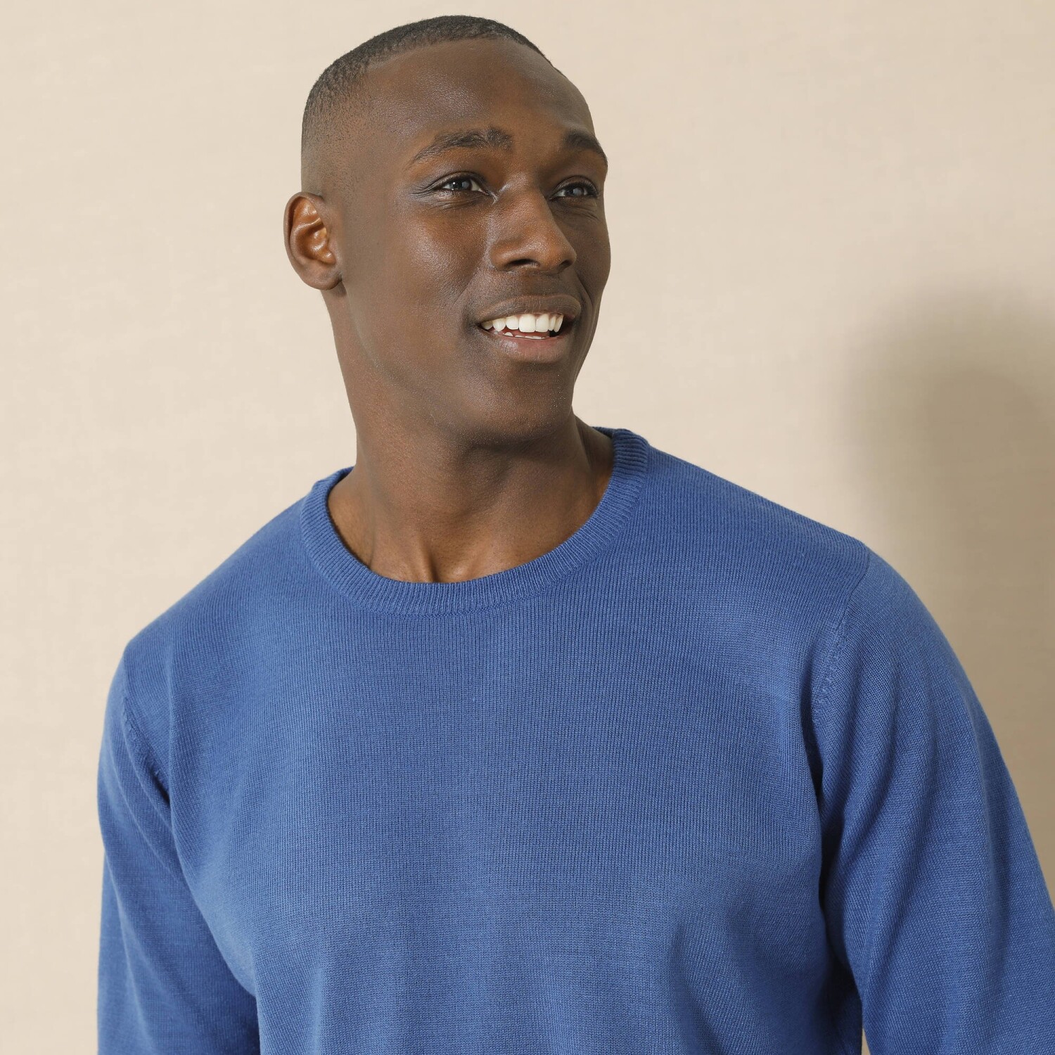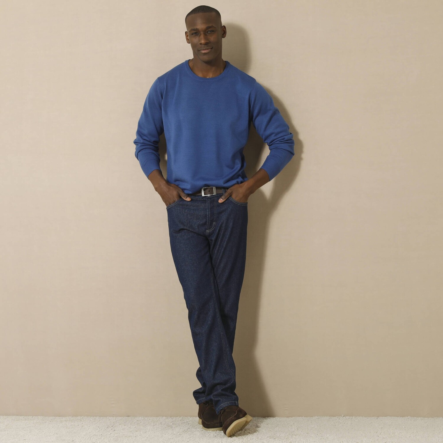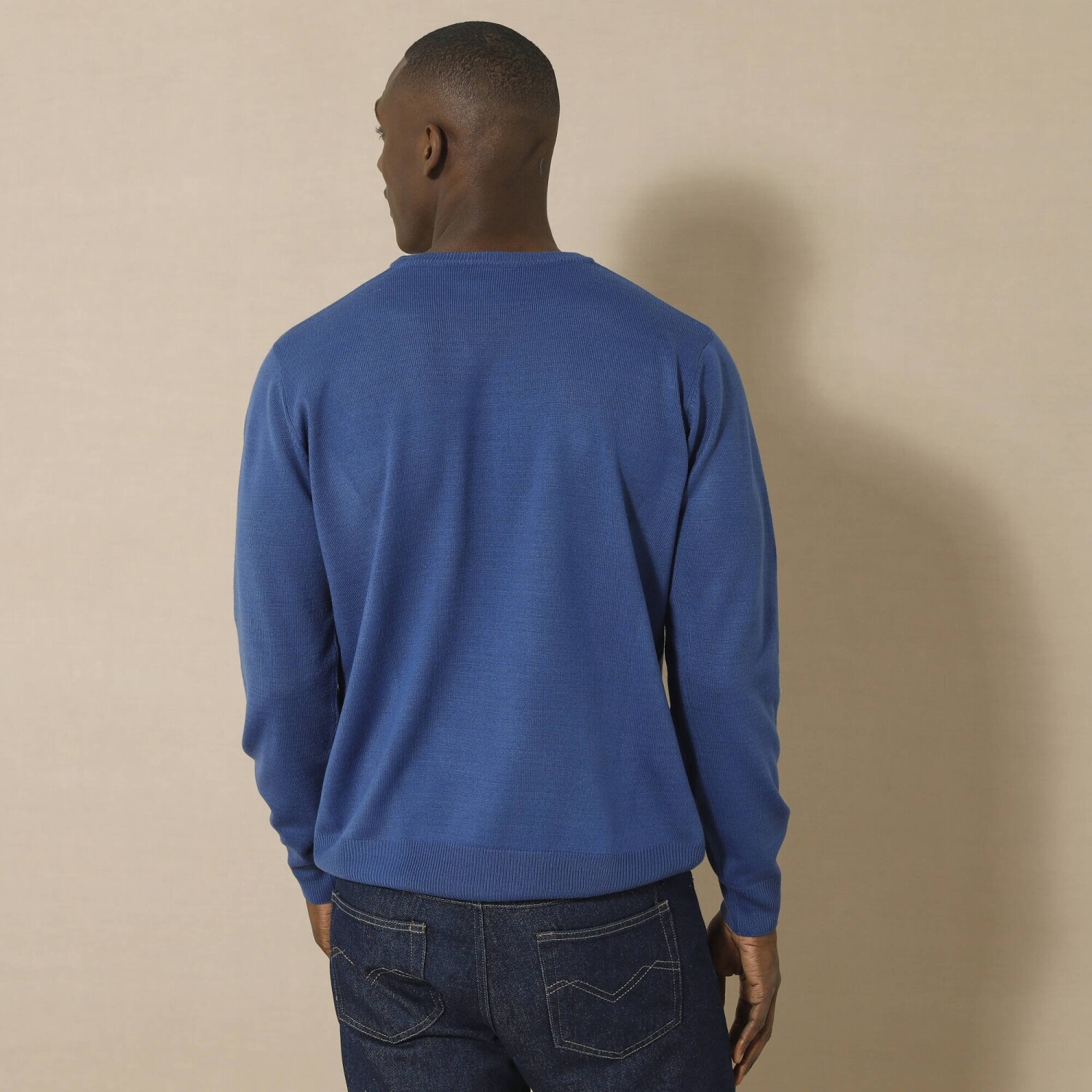 Croială clasică, culori moderne… acest pulover cu guler rotund este confecționat dintr-un material ușor de întreținut. Are decolteu rotund, mâneci lungi și manșete elastice. Se poate spăla la mașină la 30°C pe ciclul de lână.