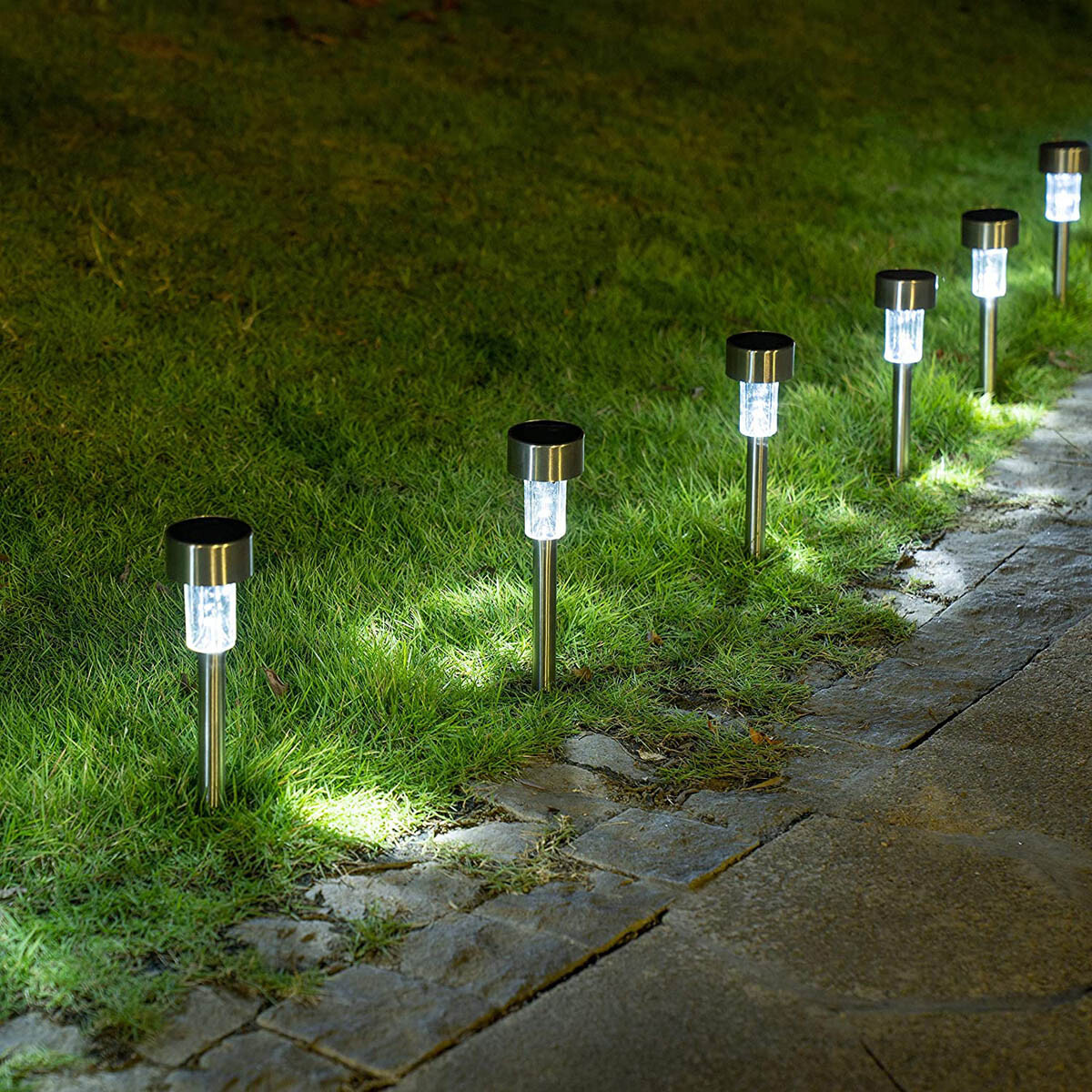 Înveliți-vă grădina într-o lumină moale de seară. Lanternele metalice bogat decorate păstrează energia în timpul zilei și creează o atmosferă fermecătoare seara. Disponibile cu lumină albă caldă continuă sau intermitentă. Alimentare solară. 10 lanterne cu lumină albă caldă. Lanterne metalice bogat decorate. Rezistente la intemperii.
