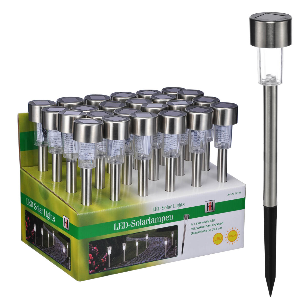 Flori colorate ziua, iluminare strălucitoare noaptea - lumină intermitentă sau continuă, exact așa cum doriți! Energia solară luminează grădina dvs. cu strălucire intermitentă sau cu lumină caldă continuă în fiecare seară. Acționare solară. Cu lumină intermitentă + constantă. Pentru paturi de flori și ghivece de flori. Gainsborough. Cu o țeapă de înfipt în pământ.