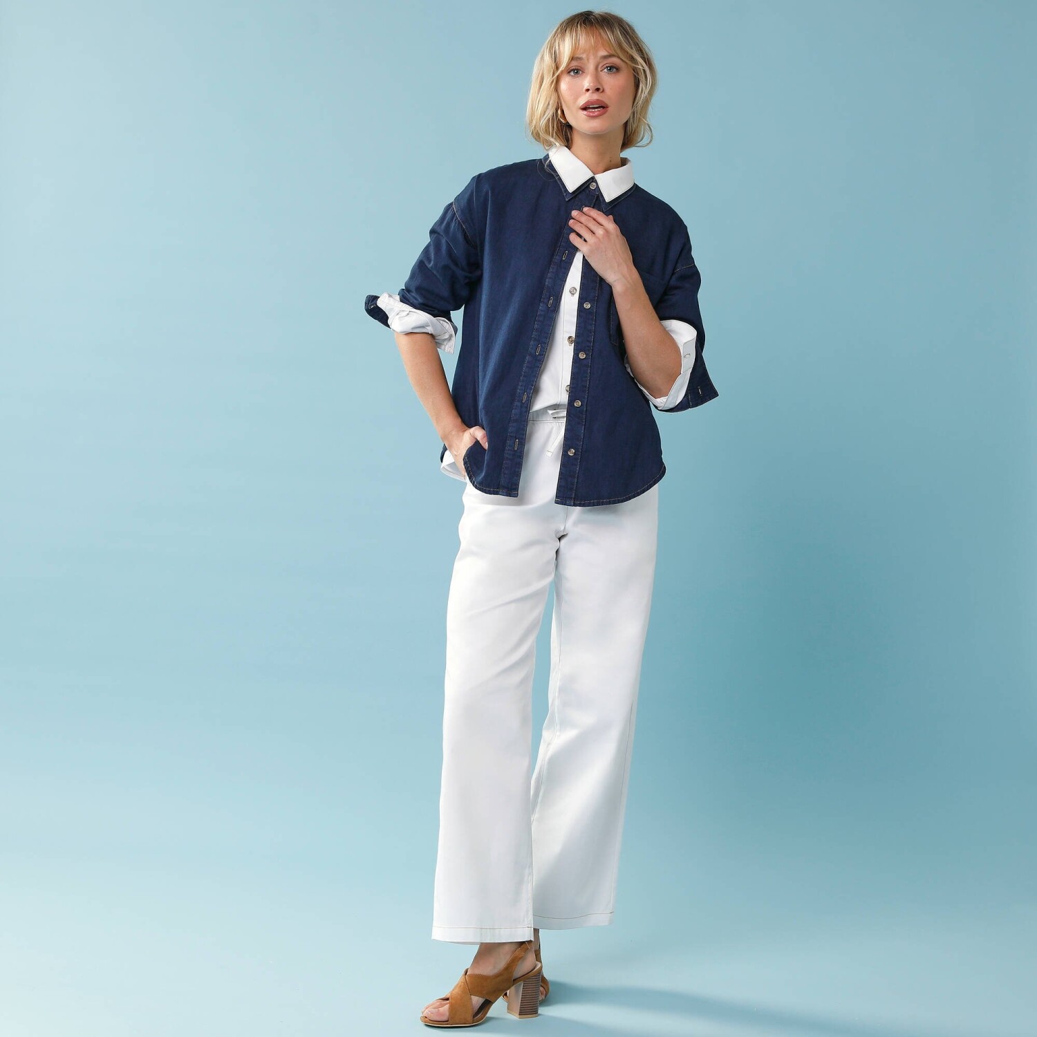 Confecționați din bumbac confortabil, cu o spălare ușoară, acești pantaloni drepți cu buzunare aplicate sunt ușor de combinat. Croiul drept flatează orice siluetă. Două buzunare aplicate la spate, două buzunare frontale. Talie normală. Talie mulată, conturată, cu cinci gaici pentru curea. Închidere cu fermoar și nasture. Twill elastic. Finisaj spălat. Certificare OEKO-TEX „Made in Green”. Pe lângă verificarea prezenței a sute de substanțe chimice care contribuie la o siguranță ridicată, această etichetă garantează principii de producție bine gândite și practici sociale controlate. Se poate spăla la mașină.