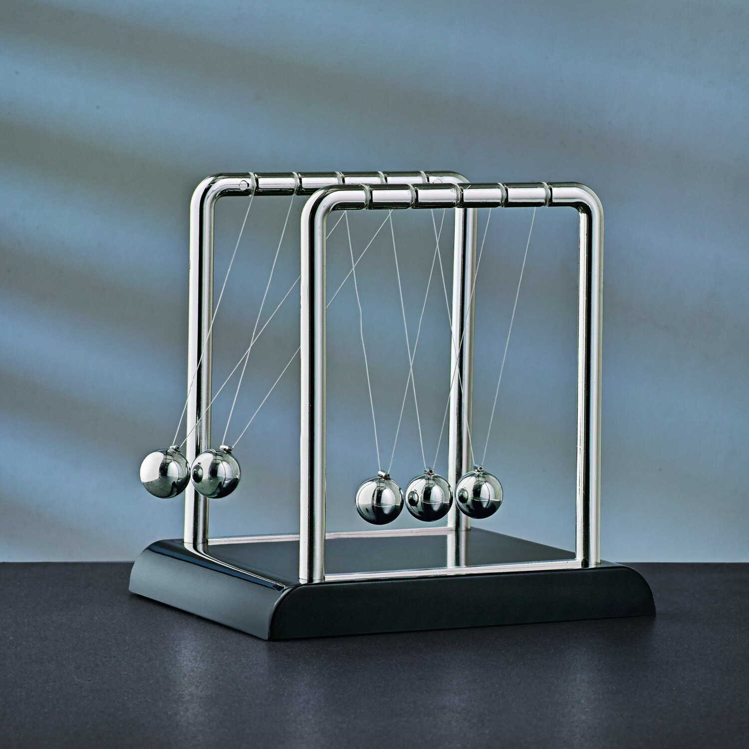 Arta și știința ingenios înscenate cu pendulul faimos al lui Newton. Mingea exterioară dintre cele cinci bile pune mingile în mișcare, ilustrând în mod fascinant legea conservării impulsului. Este decorativ și în același timp relaxant.