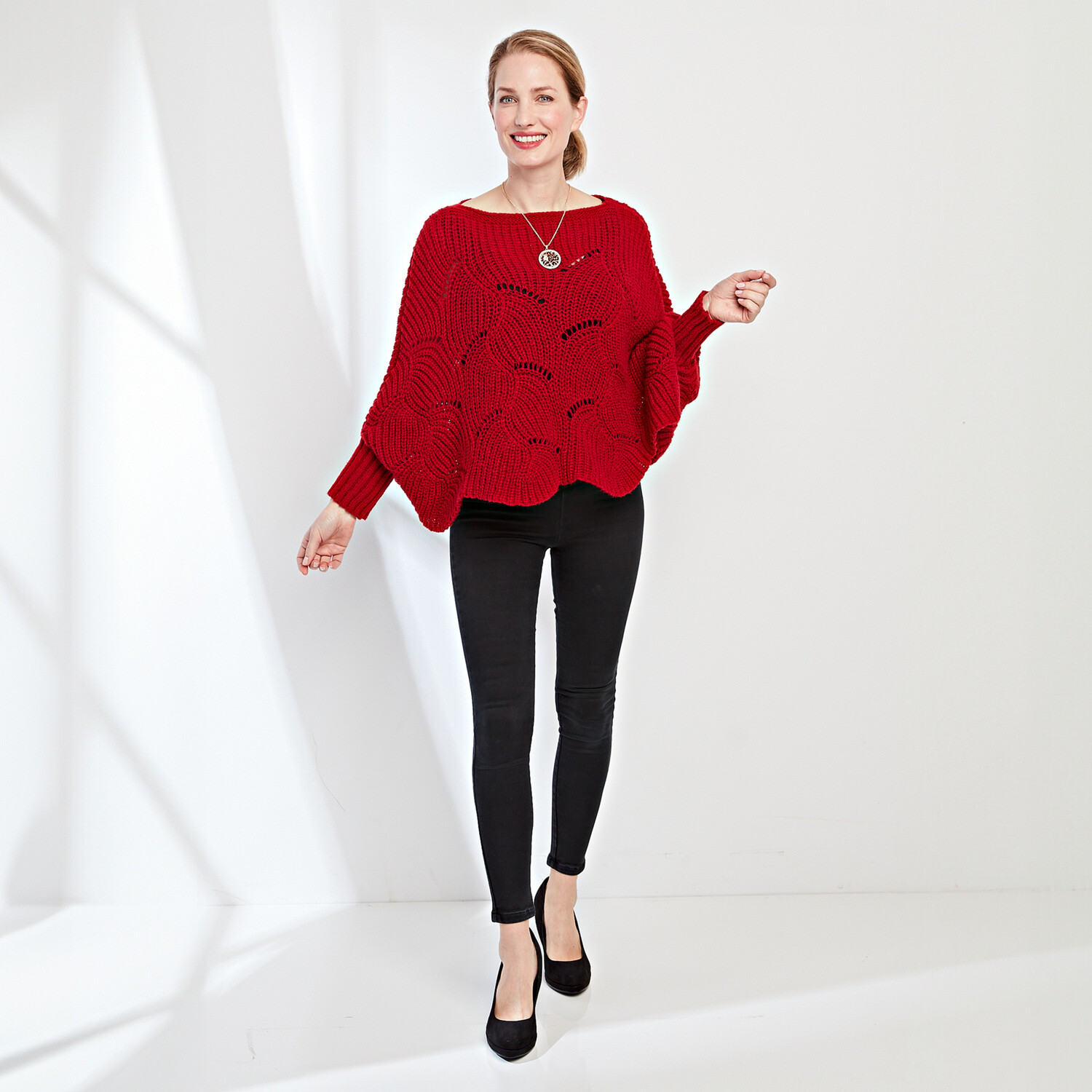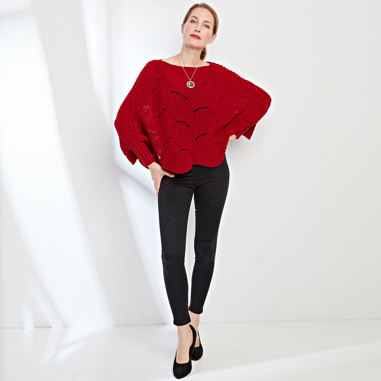 Perfectă cu un tricou alb sau o bluză cămașă, un pulover tip pulover nu dai niciodată greș. Model neted, moale la atingere. Croială actuală, umeri căzuți. Decolteu rotund. Mâneci lungi. Pulover întreg în față. Tiv drept la bază. Finisaj cu nervuri. Se poate spăla la mașină.