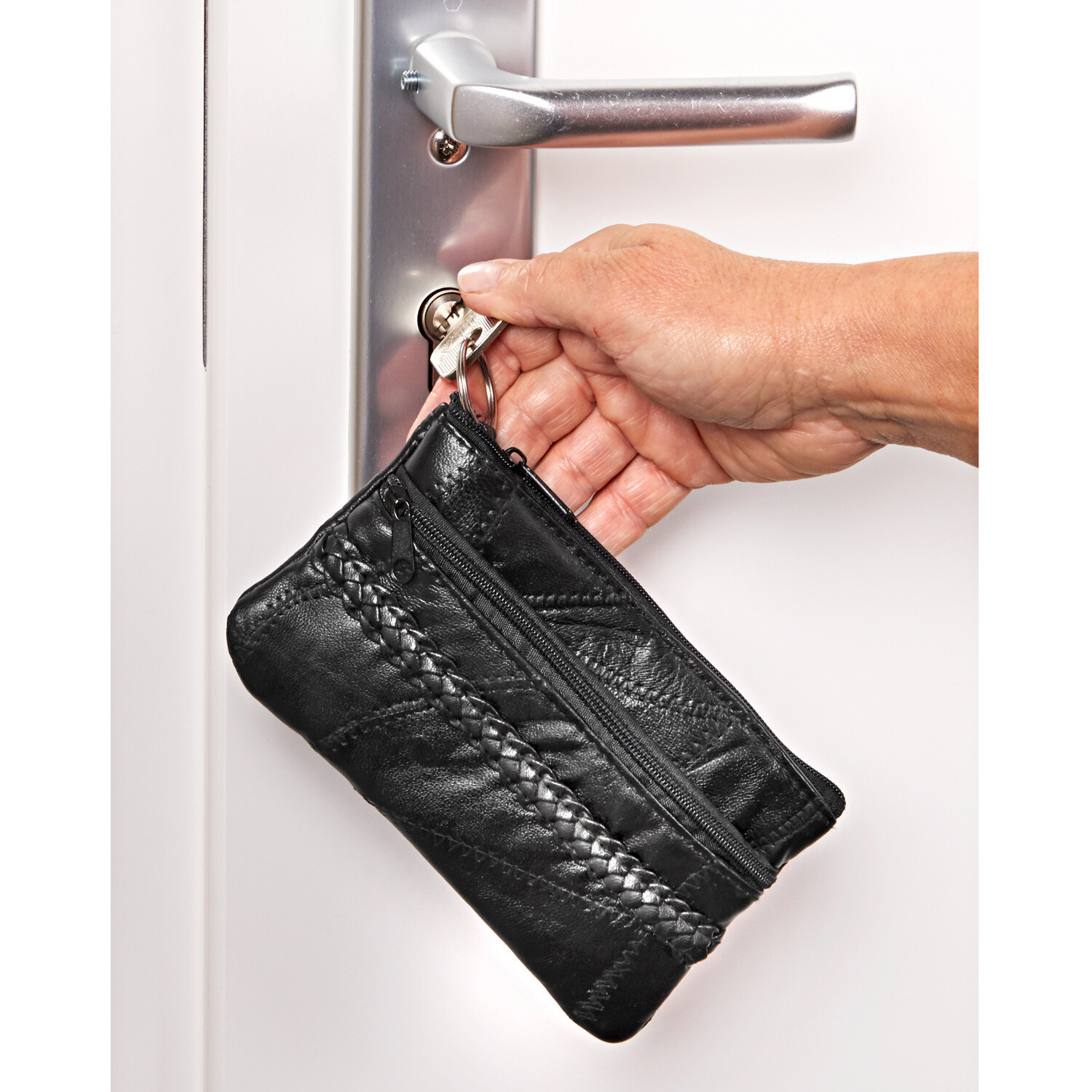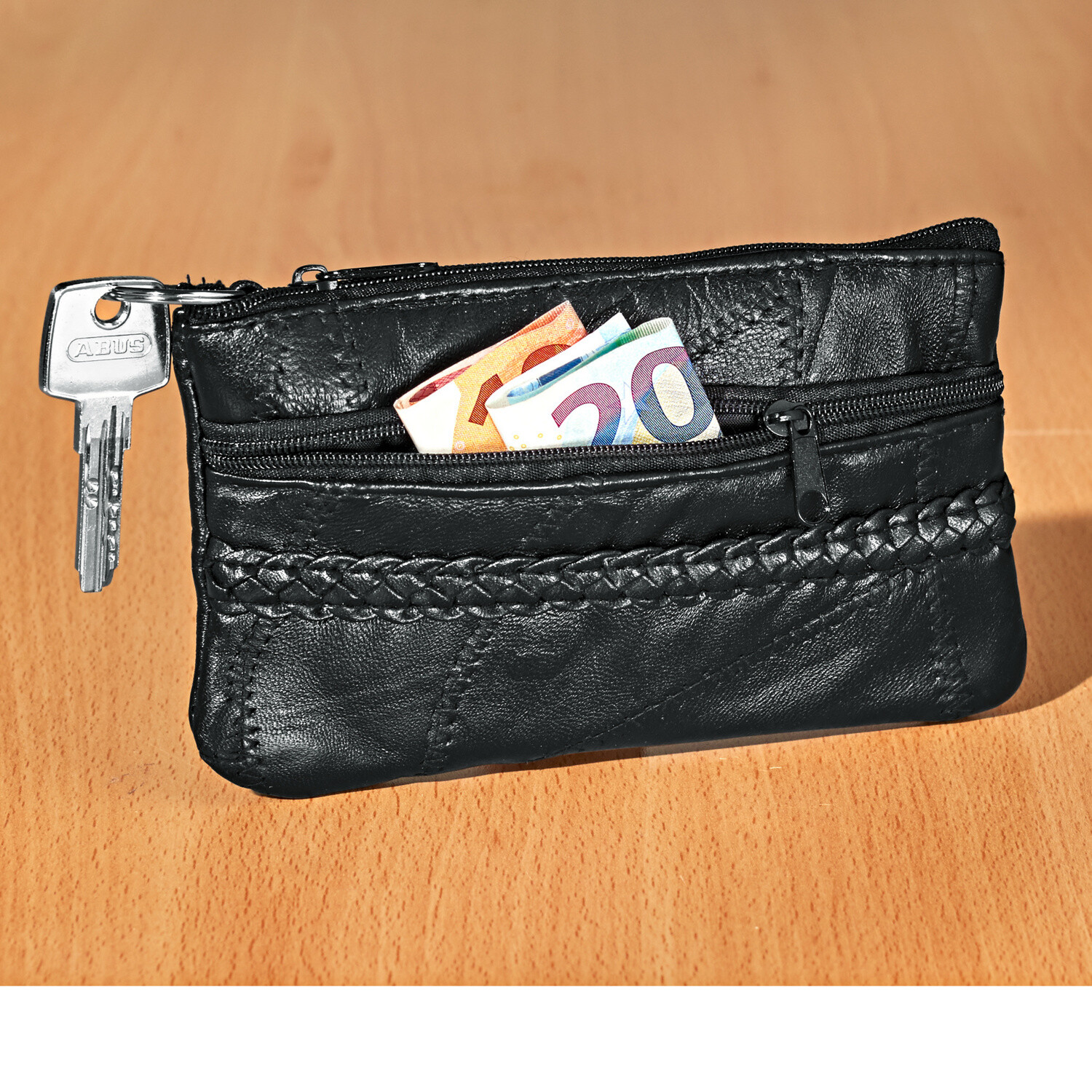 Noul nostru portofel pentru chei, are un buzunar suplimentar cu fermoar pentru monede și bancnote. Fabricat din piele moale, cu împletitură decorativă - șic și practic!