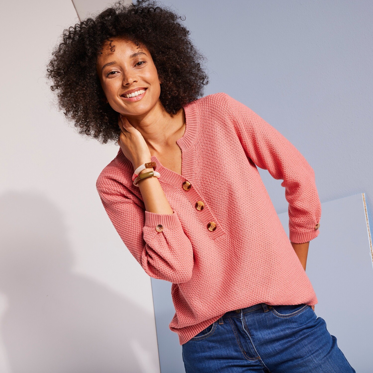 Încercați cât de bine vă veți simți într-un pulover elegant cu o atingere moale! Într-o croială evazată care se potrivește fiecărei siluete. Decolteu în V ușor rotunjit. Mâneci lungi. Croială extinsă. Ușor de întreținut, lavabil la mașină.