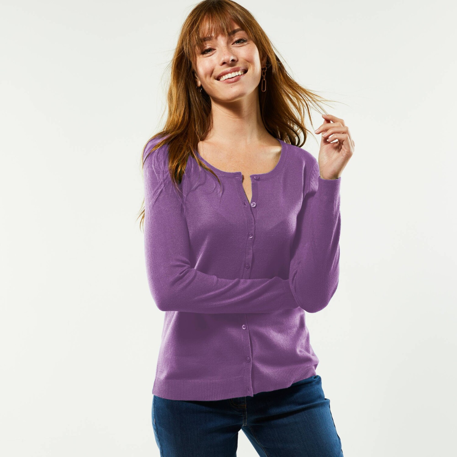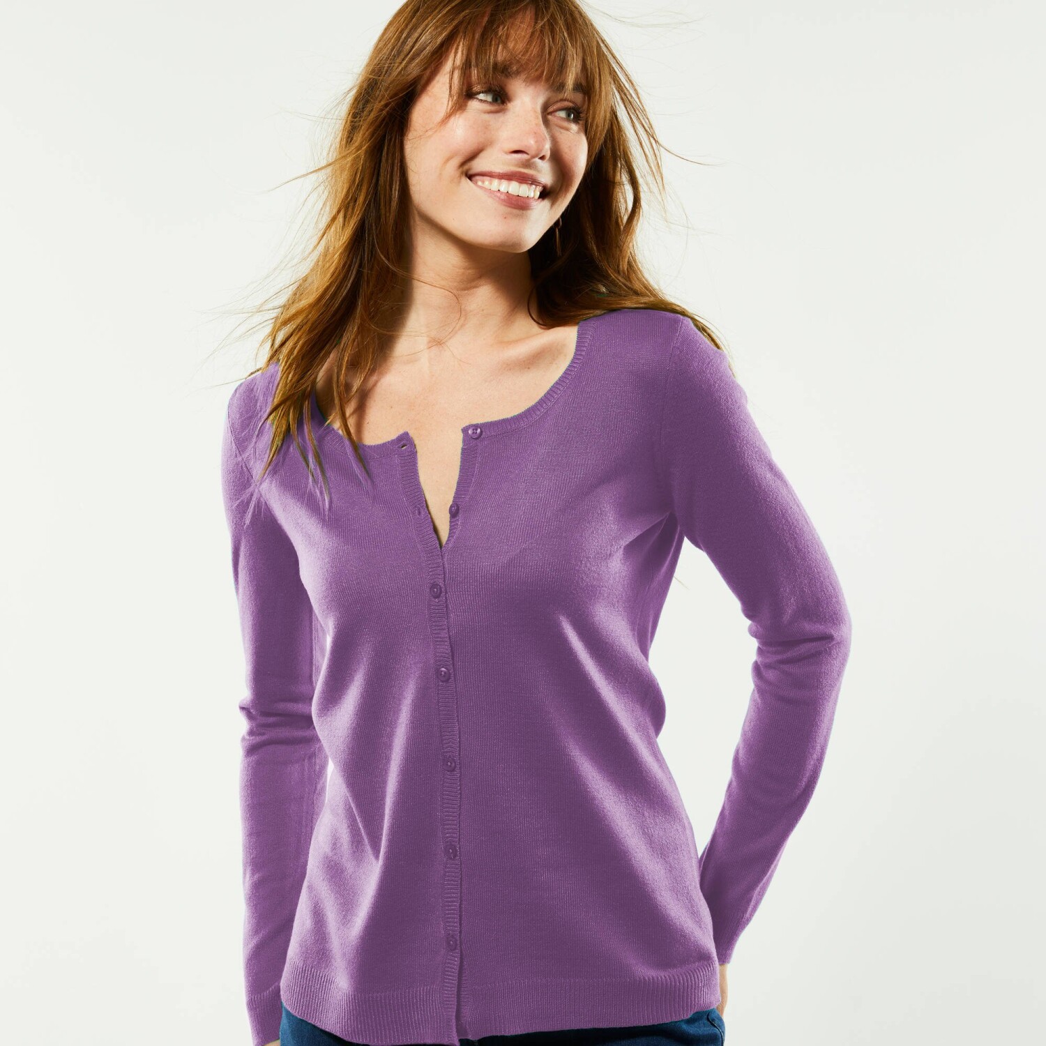 Nu ar trebui să vă lipsească acest pulover cu nasturi cu nervuri în jos în timpul iernii. Ușor de asortat, cu nasturii săi cu efect de corn, îl poți combina cu ușurință cu blugii tăi favoriți și fusta lungă. Croială actuală de confort. Decolteu în V. Butoane în față. Mâneci lungi. Tiv drept. Se poate spăla la mașină.