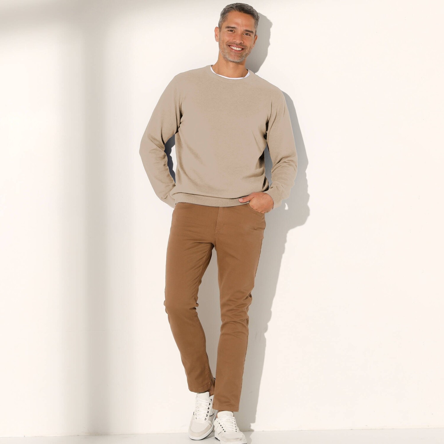 Un pulover din bumbac pur nu trebuie să lipsească dintre piesele tale clasice. Fabricat din bumbac de înaltă calitate, confortabil de purtat în timpul verii. Decolteu rotund. Mâneci lungi. Capete costelate. Standard 100 conform Oeko-Tex (n° CQ 1216 / 3 IFTH). Această marcă identifică produsele textile care au fost supuse unor teste de laborator pentru o gamă largă de substanțe nocive și produsul este sigur dincolo de standardele actuale. Se poate spăla la mașină.