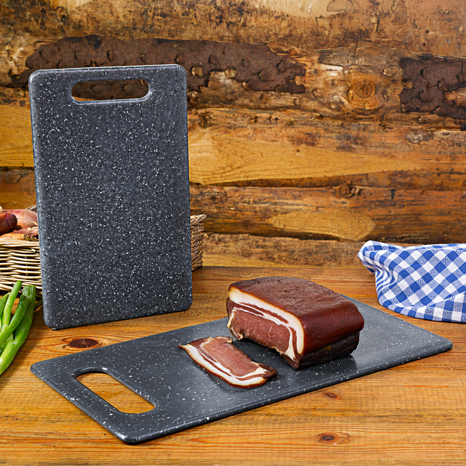 Fie că îl folosiți ca tocător de bucătărie sau farfurie, de acest tocător de culoarea granitului veți fi mulțumiți. Este rezistent la zgârieturi și tăieturi, nu este poros, este ușor de întreținut - și poate fi folosit oricând.