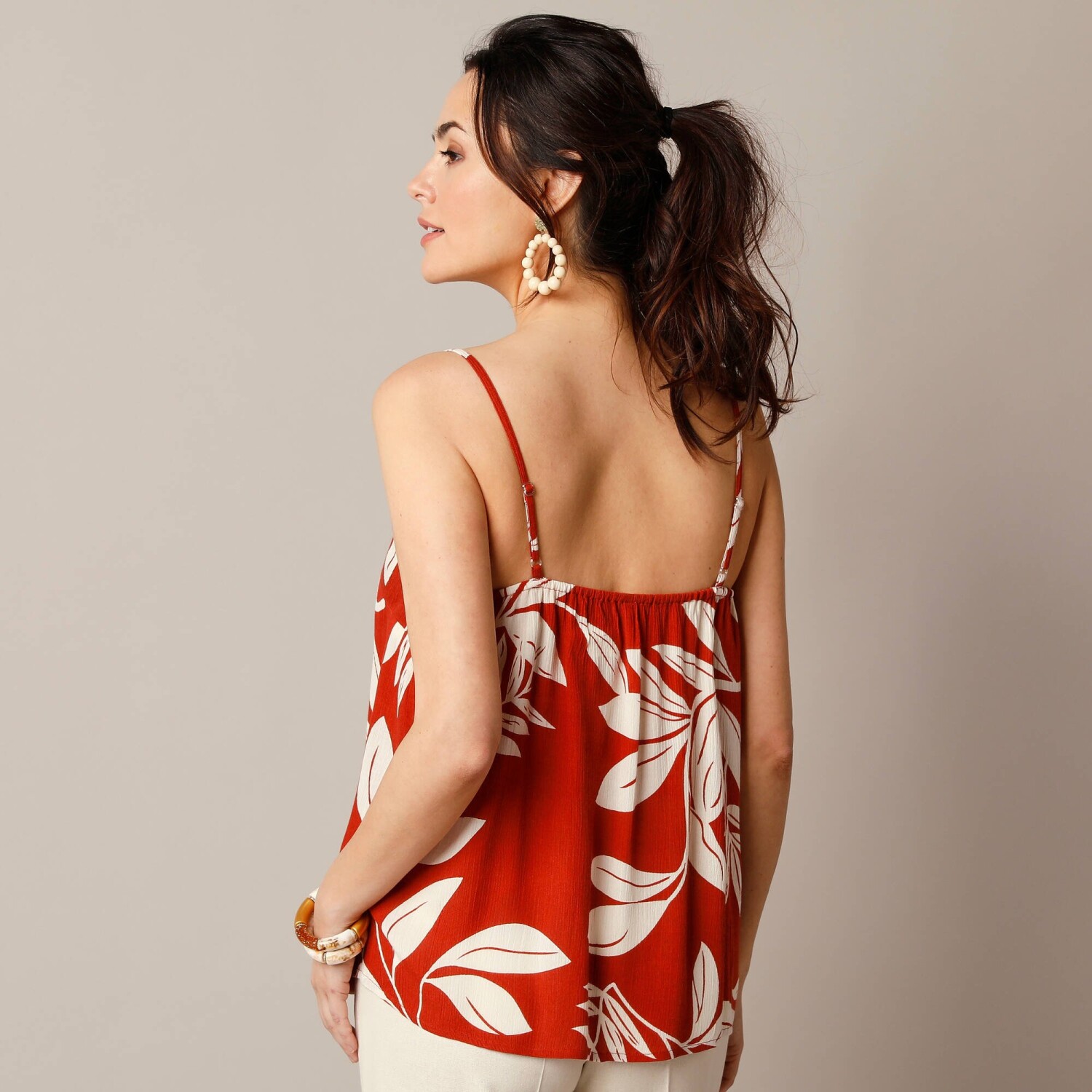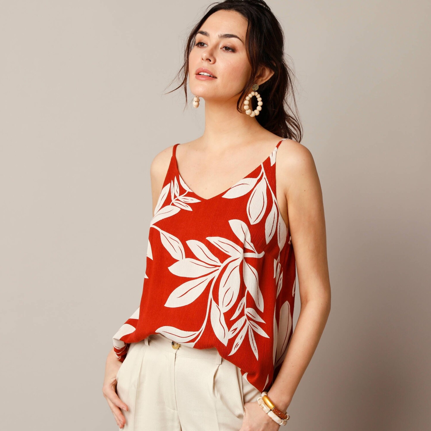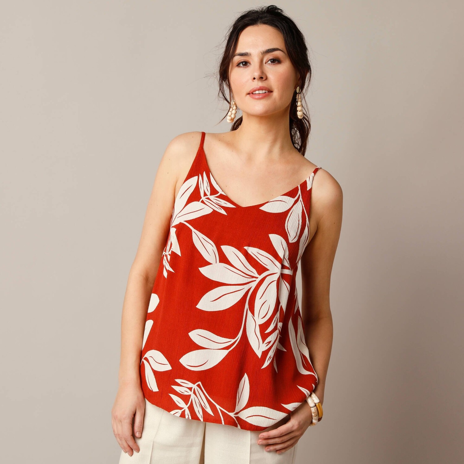 Topul frumos imprimat iese în evidență cu bretelele sale originale cu cordon și datorită tăieturii sale mai largi se potrivește fiecărei siluete. Tricot aerisit, ușor de întreținut. Imprimeu. Ținută confortabilă. Decolteu în V rotunjit. Cusătură centrală în față cu 3 nasturi cu aspect de corn. Șnur la umeri. tiv drept. Se poate spăla la mașină.