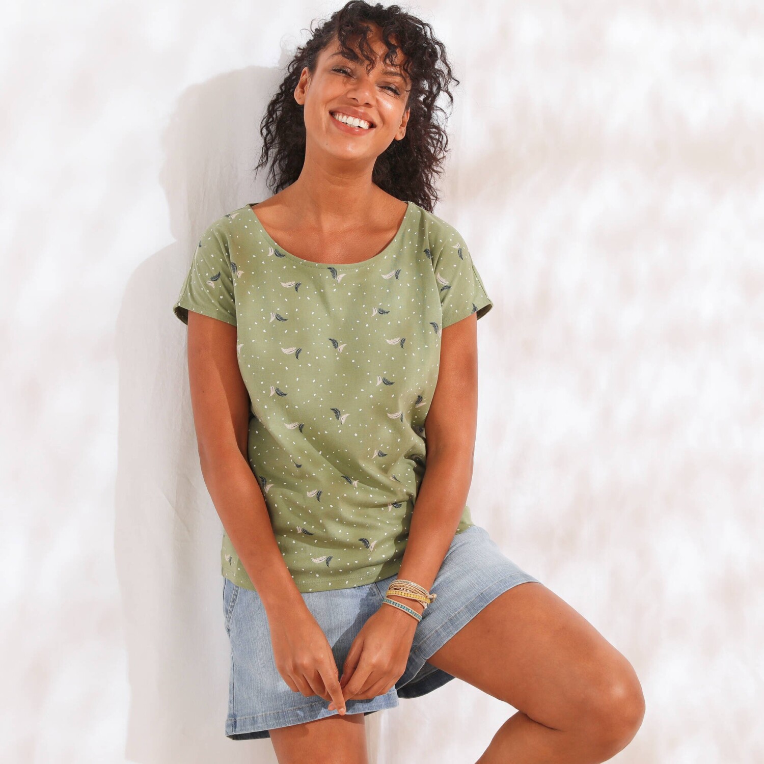 Cumpără responsabil și fă-te fericit cu un tricou imprimat la modă, care îți înveselește întreaga ținută și este prietenos cu planeta noastră! Certificată Oeko-Tex, Blancheporte contribuie la protejarea pielii tale și a mediului prin utilizarea bumbacului crescut organic. Mâneci scurte. Decolteu rotund. tiv drept. Croială largă topică. Imprimeu all-over într-un design minimalist. Standard 100 conform Oeko-Tex (n° CQ 1216/3 IFTH). Această marcă identifică produsele textile care au fost supuse unor teste de laborator pentru o gamă largă de substanțe nocive și produsul este sigur dincolo de standardele actuale. Se poate spăla la mașină.
